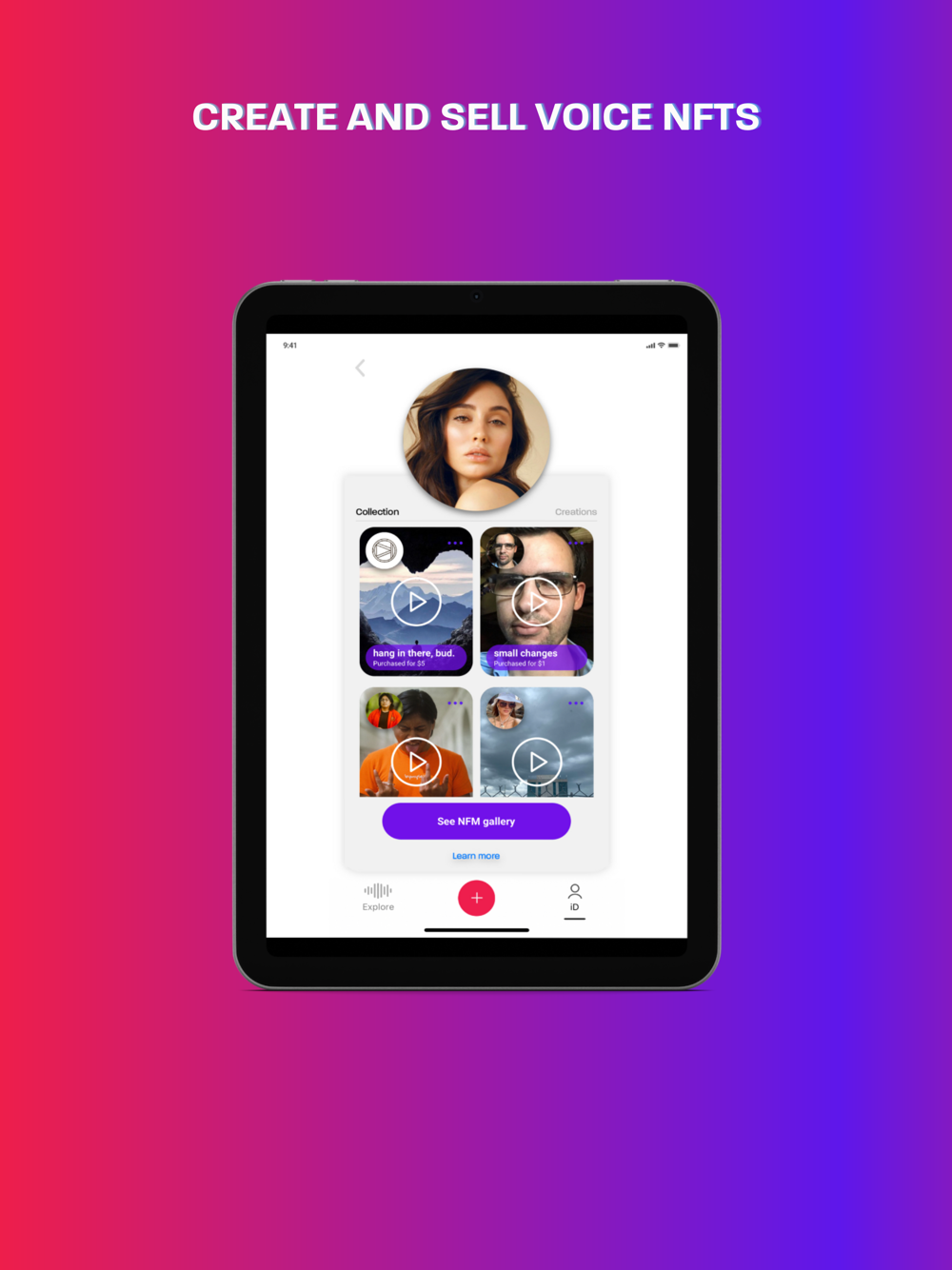 Create and collect spoken-audio NFTs (or as we call them “NFMS”). Record and mint audio clips as NFTs all within the app, and sell them as limited-edition digital collectibles. Own your mind, trade your thoughts and collect those of others.