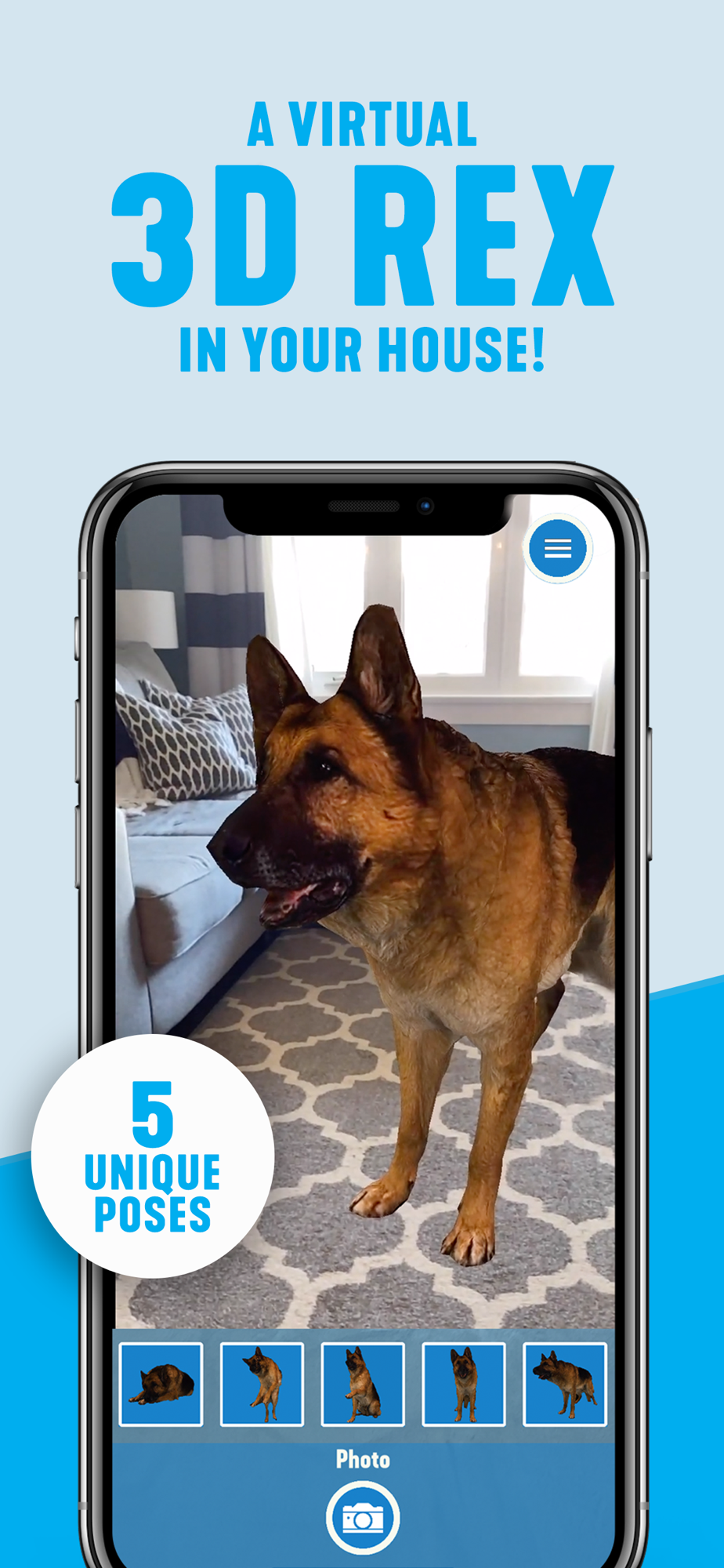 With a few simple taps a virtual Rex will respond to a series of pre-determined commands like sitting, laying down and even catching a ball. Take a photo of yourself (or your pet) with Rex and share it instantly with your family and friends. Featuring cutting-edge volumetric capture technology, it’s like Rex is right there in the room with you!
