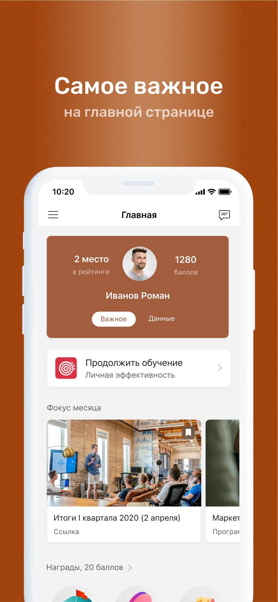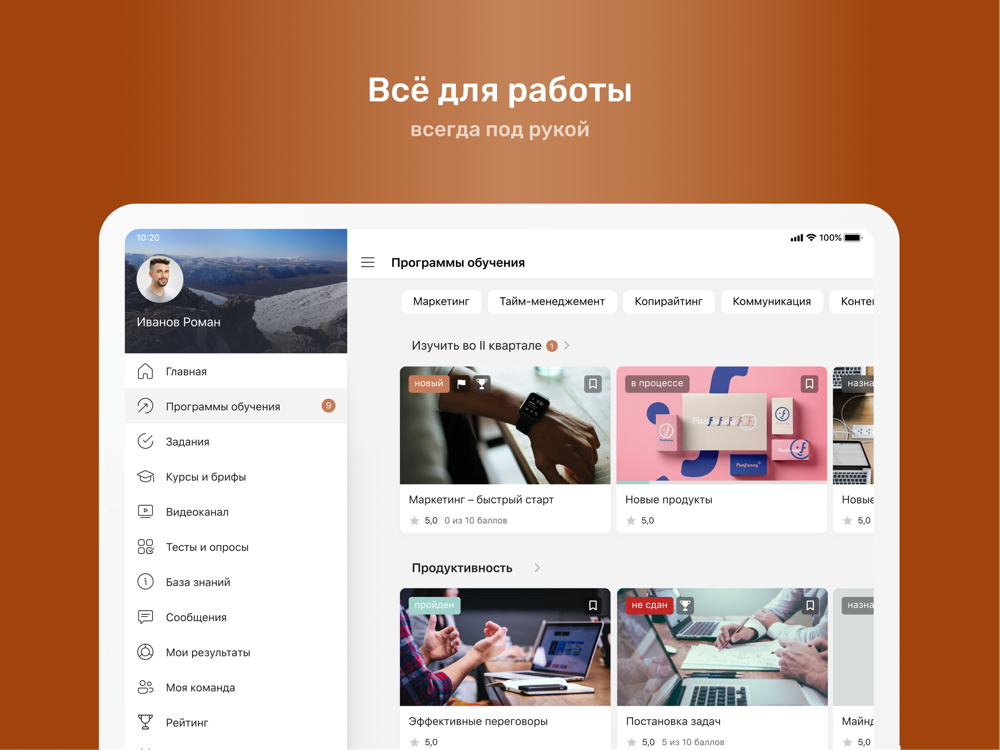 ⁃ Вы руководитель? Публикуйте и обсуждайте новости команды прямо из приложения, выдавайте награды и проверяйте прогресс обучения
