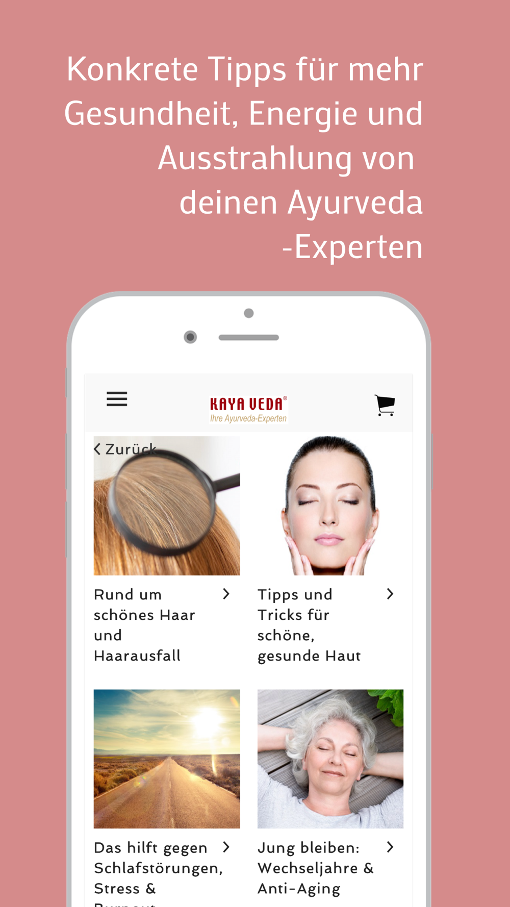 Hol dir die Kraft des Ayurveda in deinen Alltag – für mehr Wohlgefühl, Power, Ausstrahlung und Gesundheit! Mit der Kaya Veda-App nutzt du das Potential der indischen Heillehre auf einfache und effektive Weise für dich.