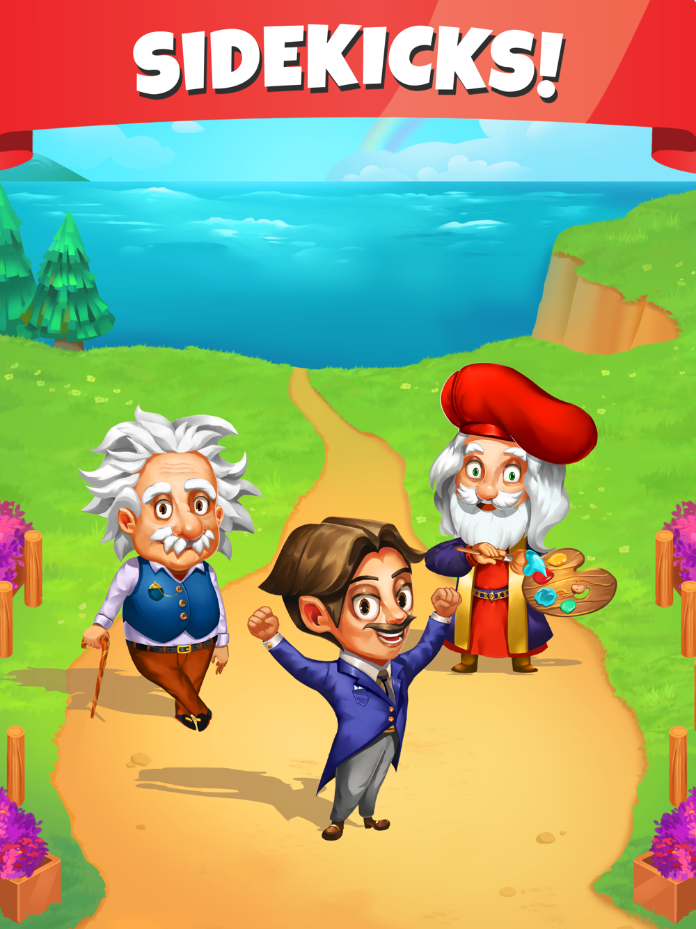 Activate your time machine to find and unlock super geniuses for extra bonuses! Build your team of geniuses so that they can start helping you hack other businesses in order to grow your village and build your coin empire. Feed your geniuses energy to increase their levels and activate their special skills to help you win! Level up your geniuses in order to increase your chances of blocking enemy attacks on your village businesses and gain extra stars and increased rewards to go towards building your coin empire.