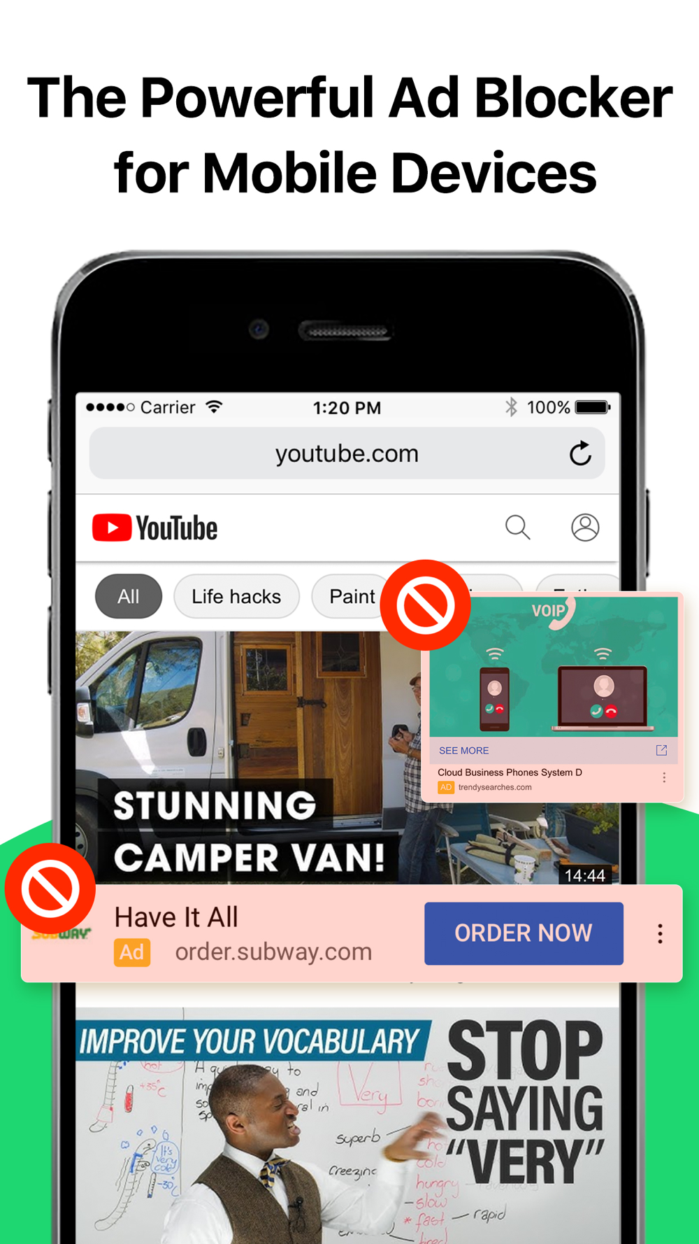 Can easily block ads on your iPhone & iPad. Make you enjoy the peace of your device