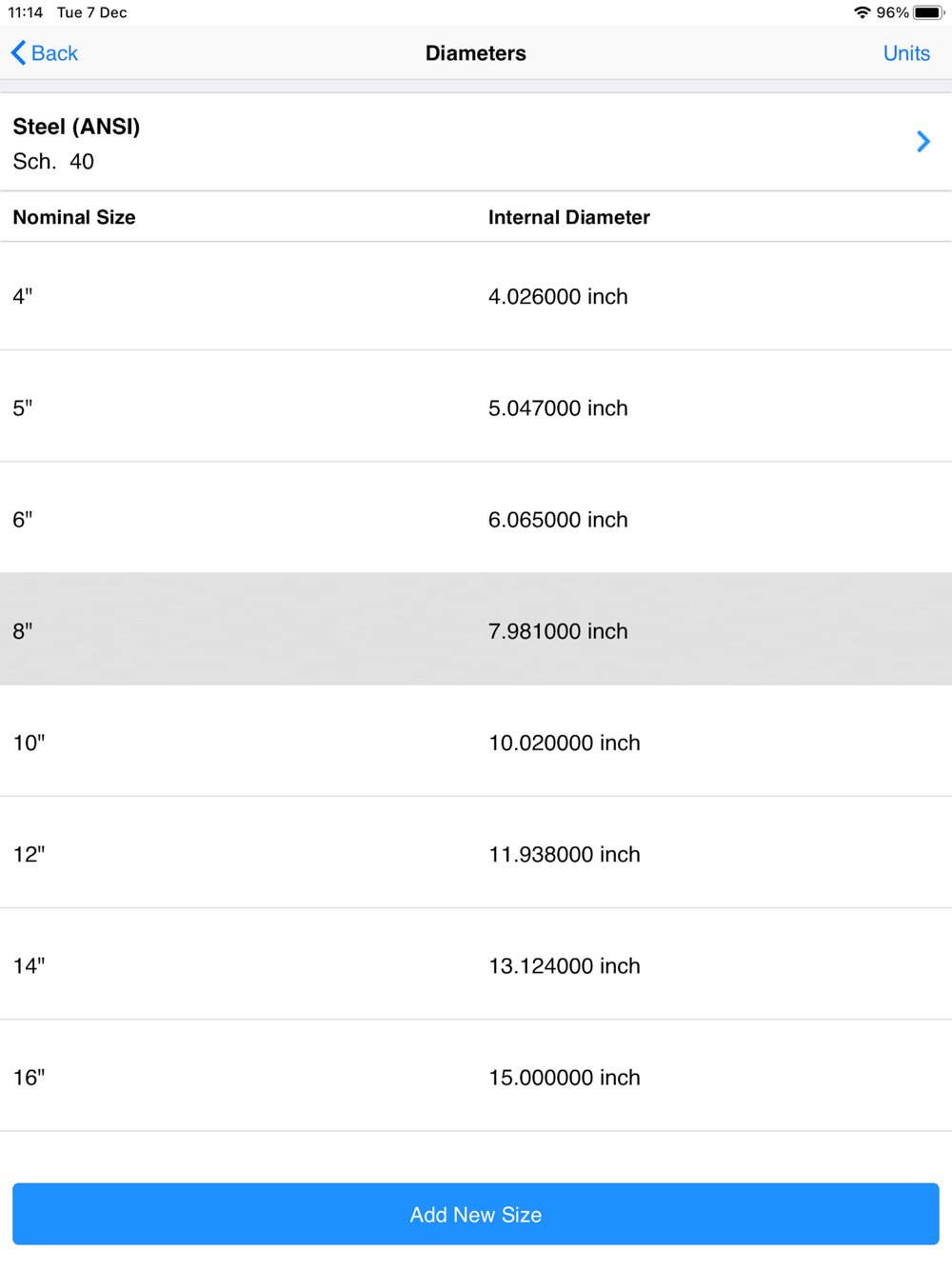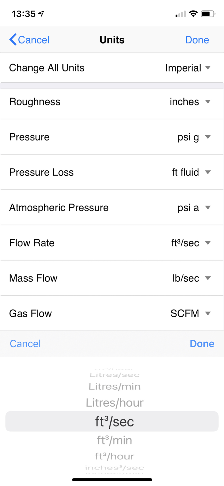 The App can operate in Imperial or Metric units and each individual field can be further customised to use a specific unit. Results values can be displayed to a specified number of decimal places.