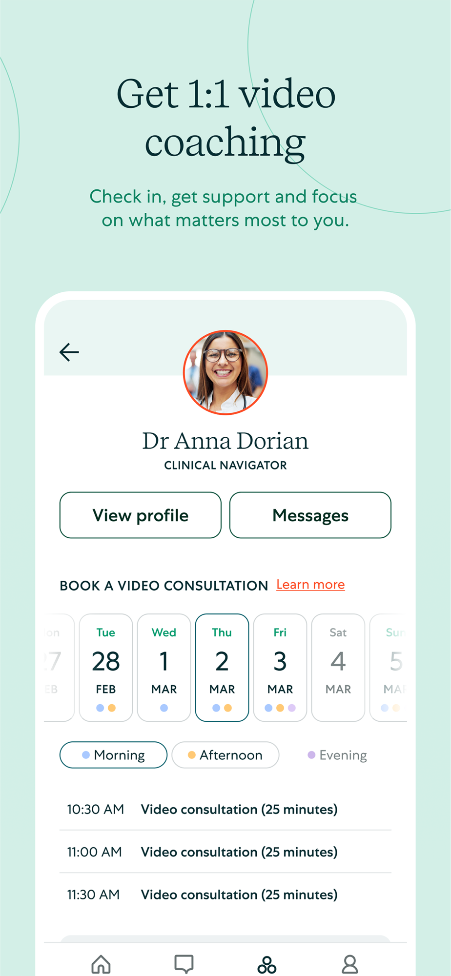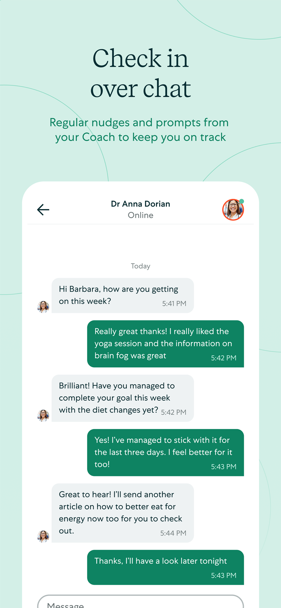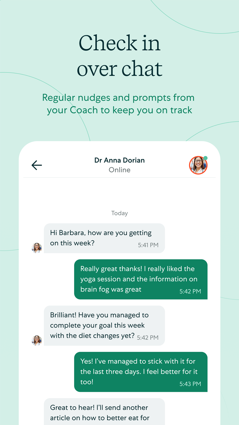 • A 1:1 video session every week with your matched Health Coach with chat support inbetween