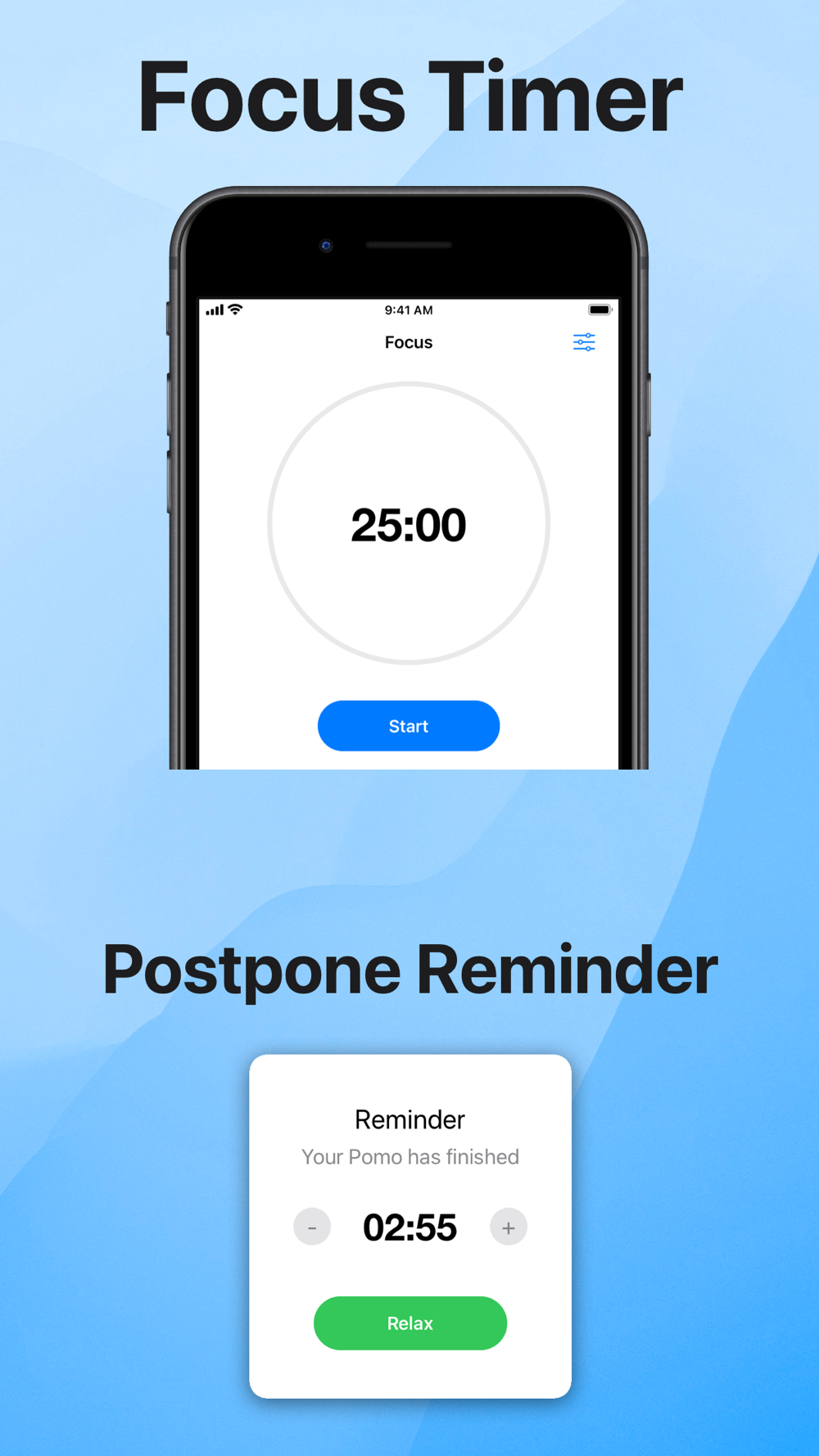 - Focus Timer: Boost your concentration with our Focus Timer. Set dedicated work periods and breaks to maintain productivity and avoid burnout. Extend timers for task completion and leverage the continuous option for uninterrupted work sessions.