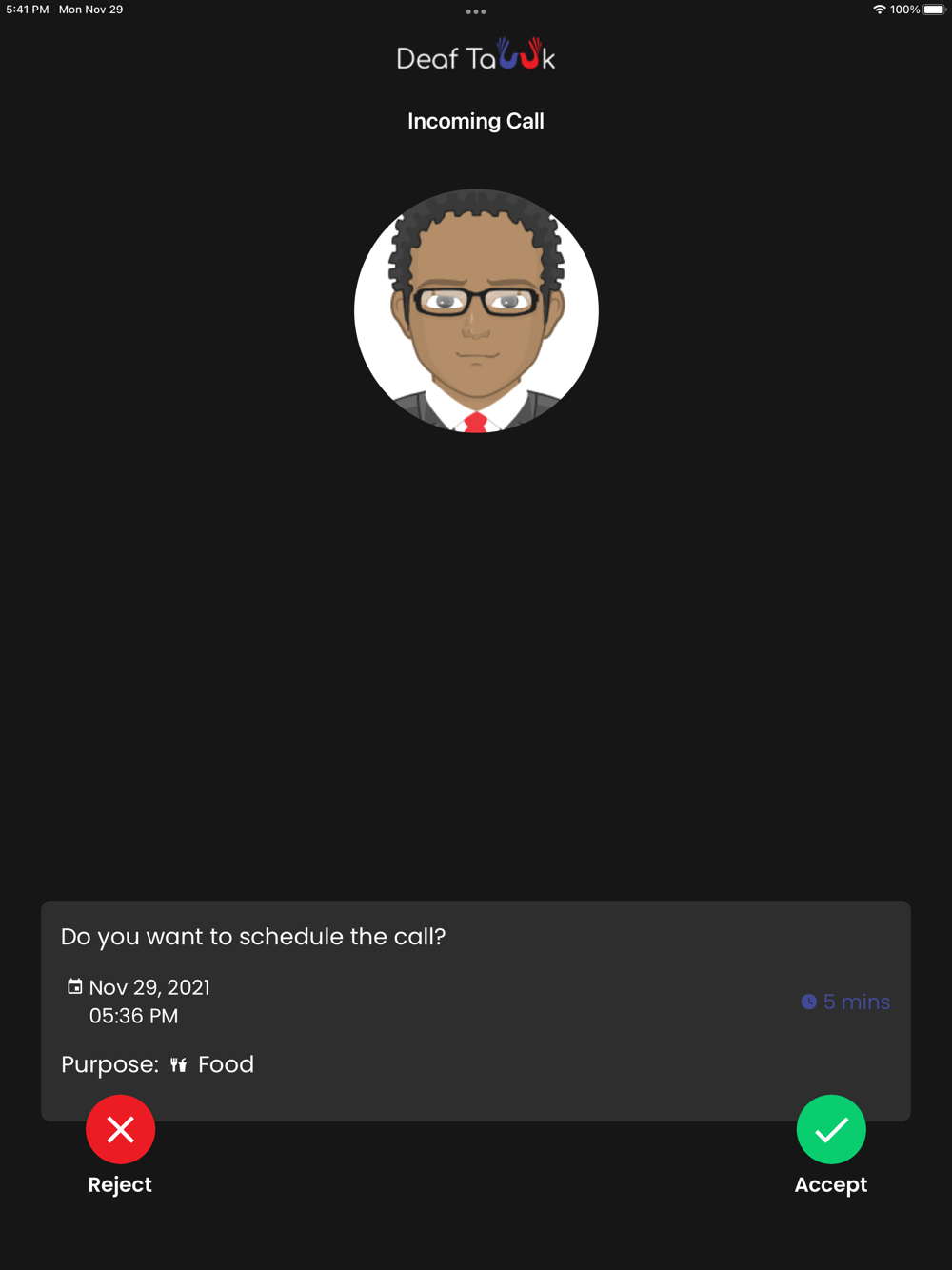 Deaftawk solution has four major components - the subscriber mobile app for the people with hearing disabilities, the interpreter mobile app for the certified sign language translators, a web portal for the guests and a web portal serving reporting dashboards. A subscriber can initiate a video call with an interpreter right away or schedule a call for a later time. While subscriber and interpreter are talking, the subscriber can invite a guest as well such as a doctor, tutor or a family member. When the guest joins a call, it now becomes a group call.