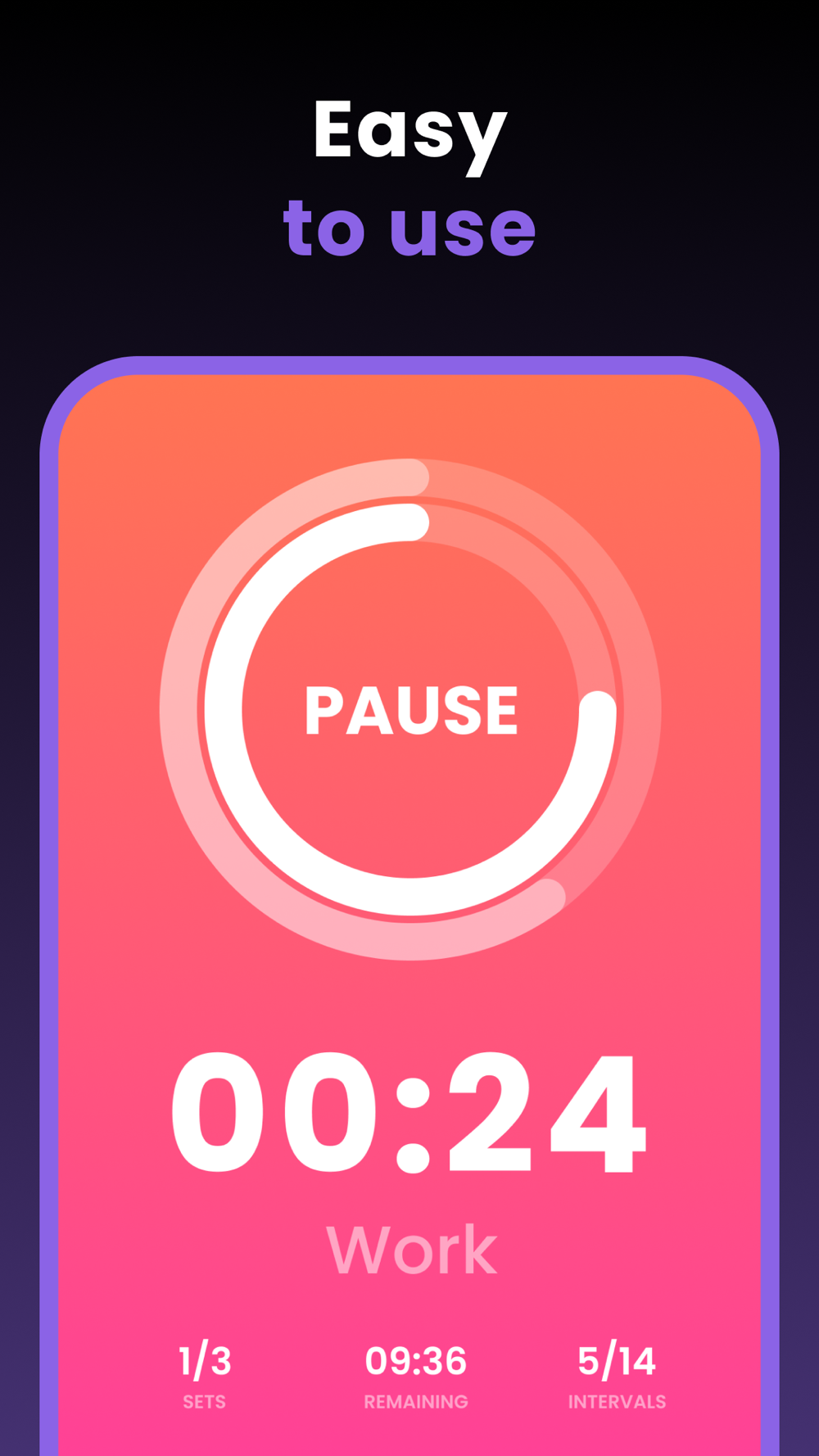 • Very intuitive interface. After installing this timer you need to press one button to start a tabata workout with classic settings.