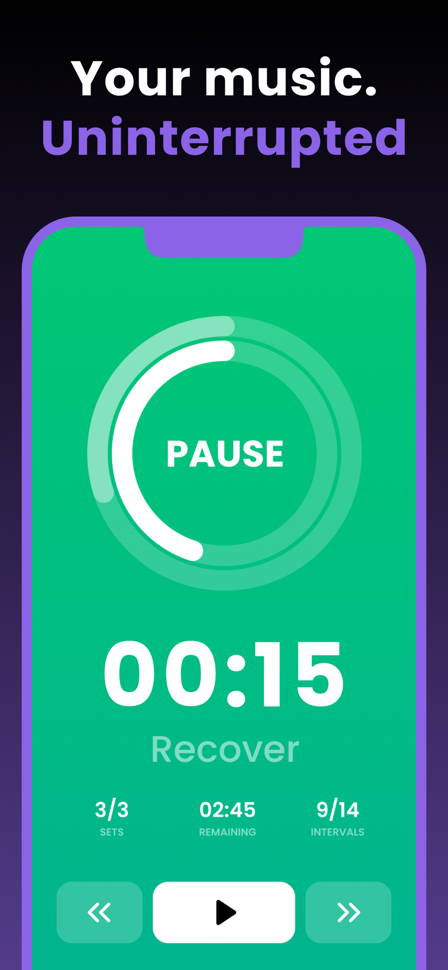 • Intervals can be configured individually. With this interval training timer you can create any interval workout with any sequence of intervals.