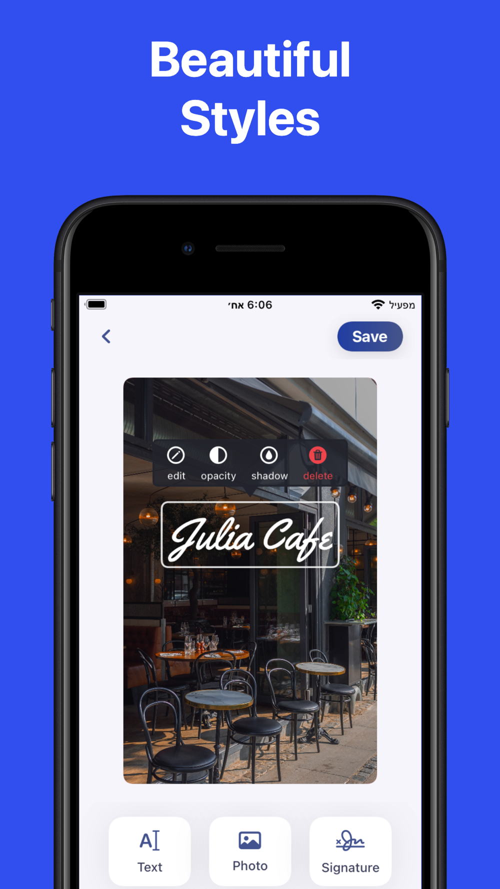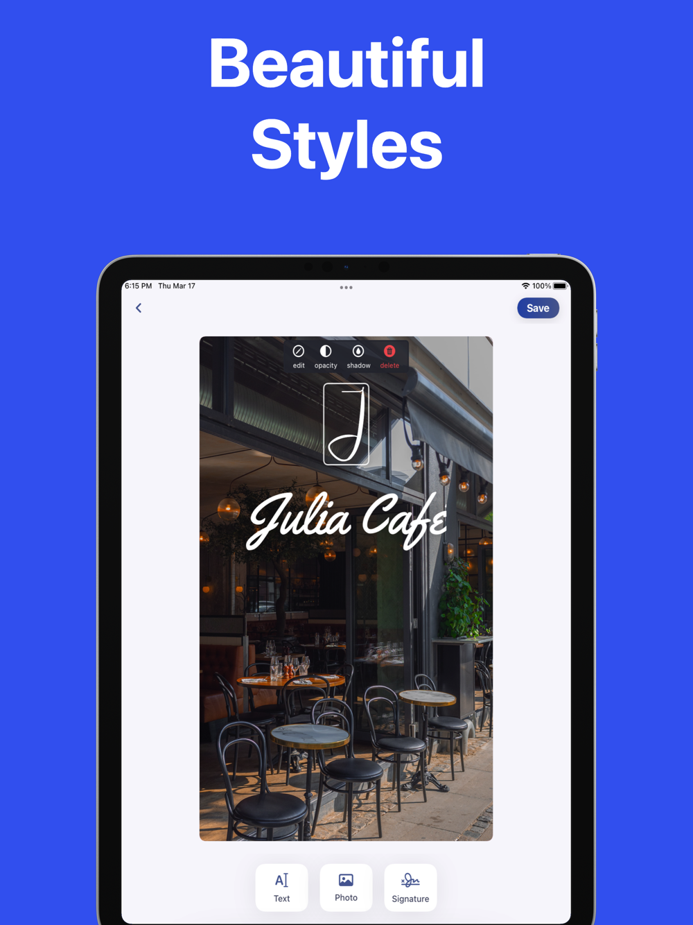 Add hand-written signature: Utilizing Apple's unique features you can now add your own uniquely hand-written signature! Add your own hand-written signature to your photo or video, give it opacity, shadow and make your photos or videos truly your own!