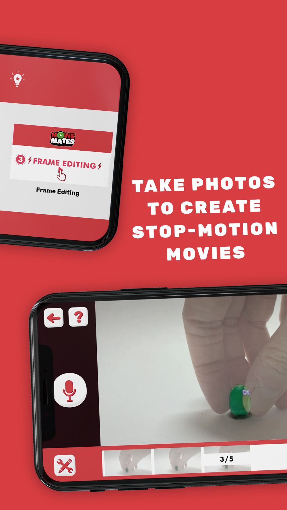 Create your own stop-motion animations with Movie Mates. It’s simple to use, making it easy and fun to bring your own stories to life!