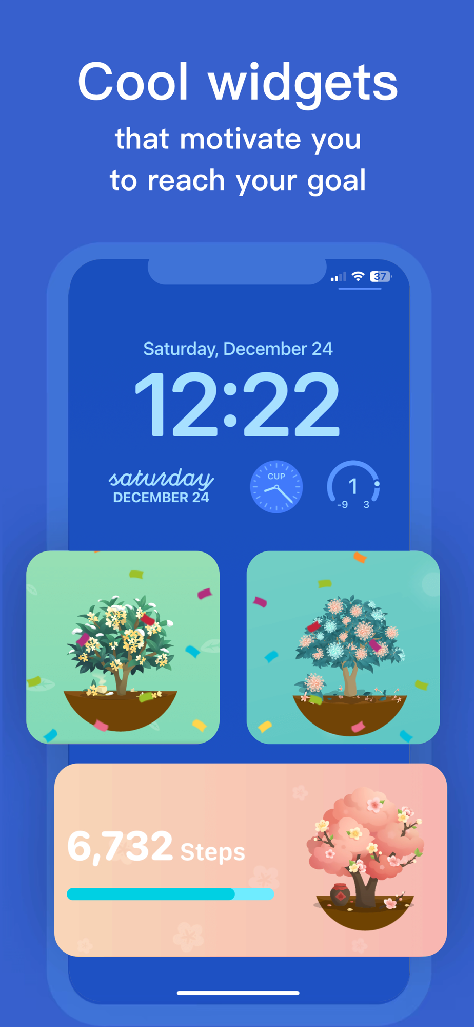 We integrate with the health app (HealthKit) to read and track your steps data and show them in a beautiful way.