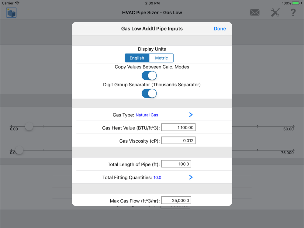 5. HVAC Pipe Sizer – Gas Low Pressure