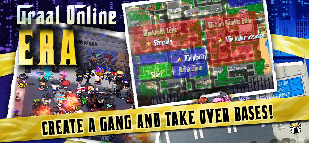 Welcome to the world of GraalOnline Era, a modern 2D action MMO RPG. Purchase weapons and work with a gang to compete in activities such as special events, base capturing and PvP battles in the Spar Complex, or start your own gang and chart your own path! There are a ton of unique weapons available. Melee weapons for close quarters or take out your enemies from long range with guns!