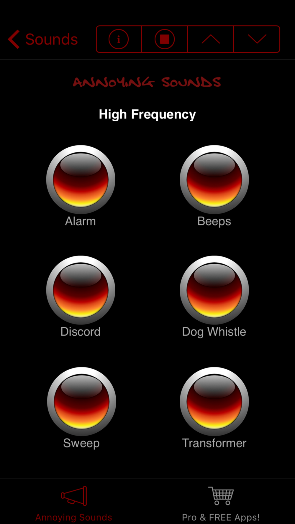 More than 60 loud and crazy sound effects to annoy your friends and make you laugh! Soundboards include annoying sounds such dog whistle, baby crying, mosquito, body sounds, airhorn, sirens, alarms, high frequency sounds, farts, burps, office, animal sounds and many more irritating noises!