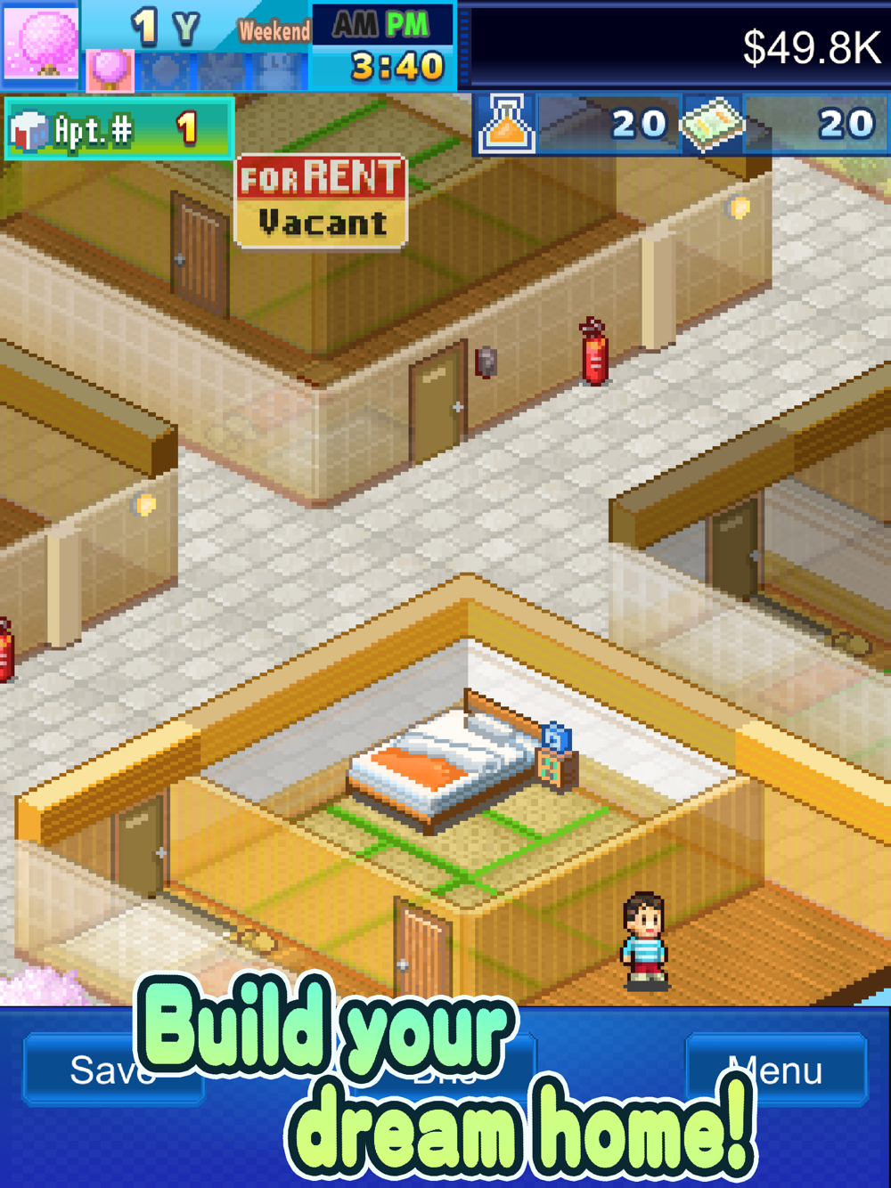 You play both architect and landlord in this fanciful new sim, and it's up to you to furnish your ideal abode with anything from arcade games to saunas to convenience stores. Certain combinations can power up your rooms...and their rent. Put an HDTV and game console together to make a game room, or a grand piano and painting together to make a fine arts room!