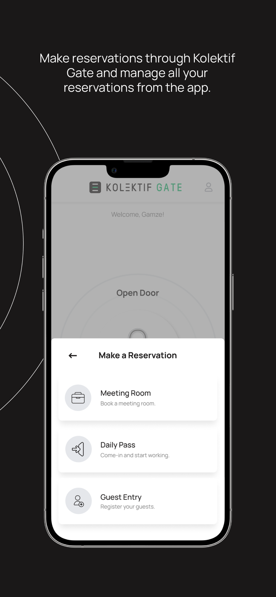 - Make reservations through Kolektif Gate and manage all your reservations from the app.