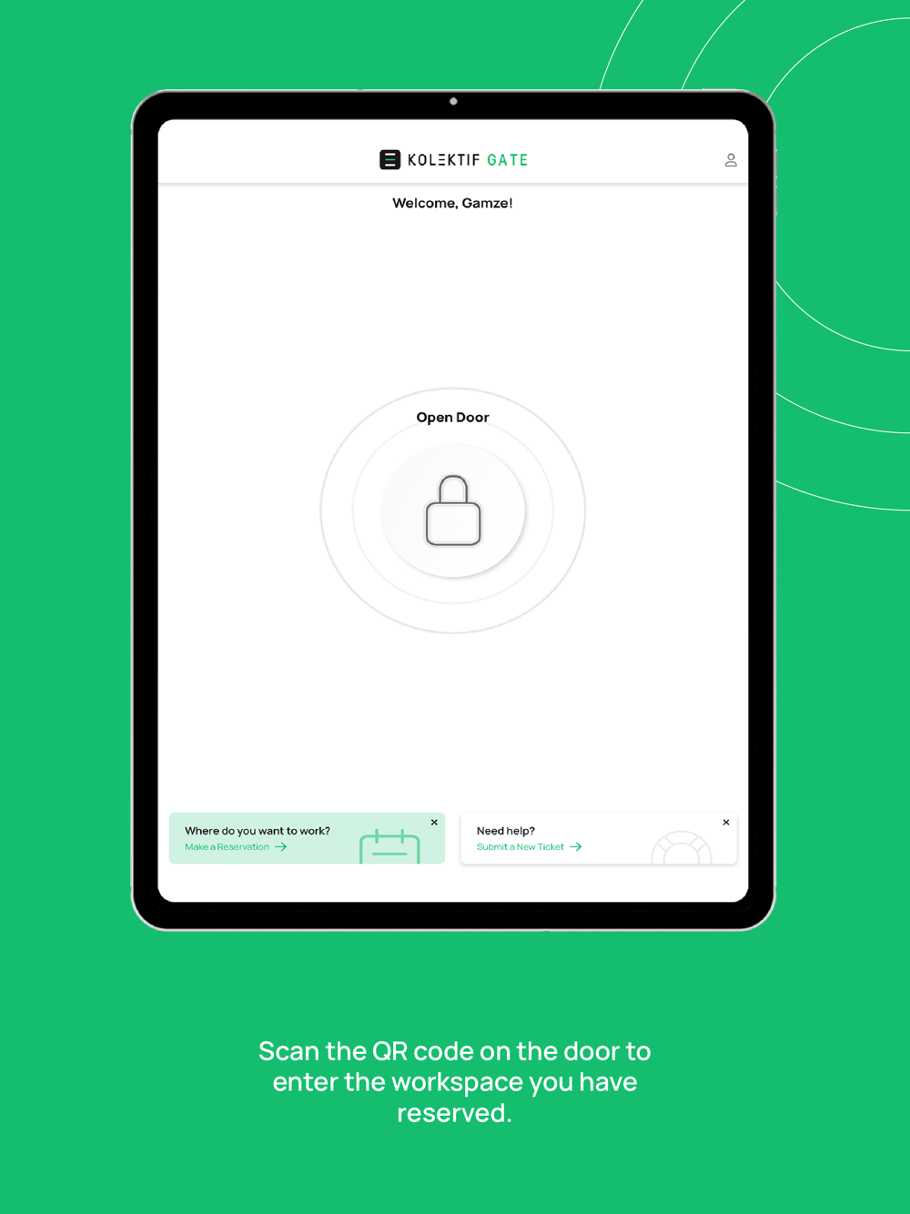 - Enter Kolektif House, your private office and/or reserved meeting rooms using the QR reader.