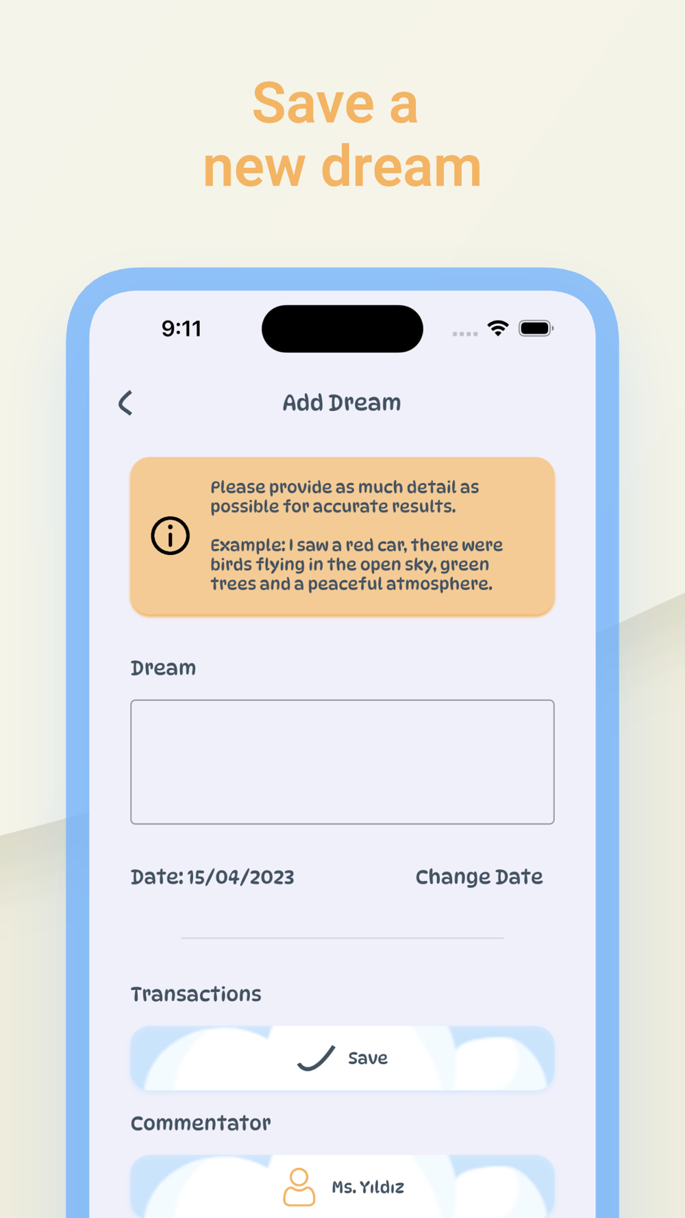 Dream Interpretation and Visualization offers you detailed and meaningful interpretations by analyzing your dreams using the latest artificial intelligence technologies. If you want to know more, you can also communicate with our dream experts within the app.