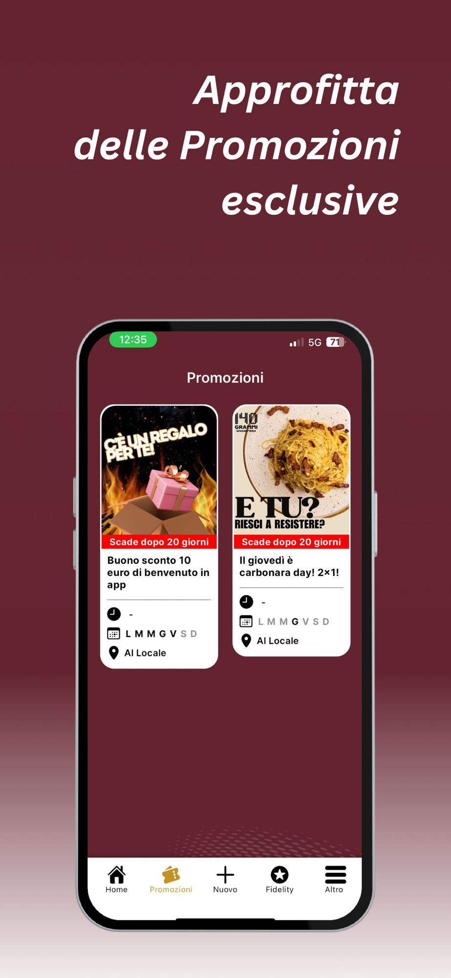Ma non è tutto: abbiamo pensato a tante offerte esclusive solo per i nostri utenti digitali. Con l'app di 140 Grammi Pessina, avrai accesso a sconti speciali e promozioni uniche, direttamente sul tuo smartphone. E accumulando punti fedeltà, potrai ottenere premi e sconti esclusivi. Basta dare un'occhiata alla sezione fidelity per scoprire tutte le possibilità.
