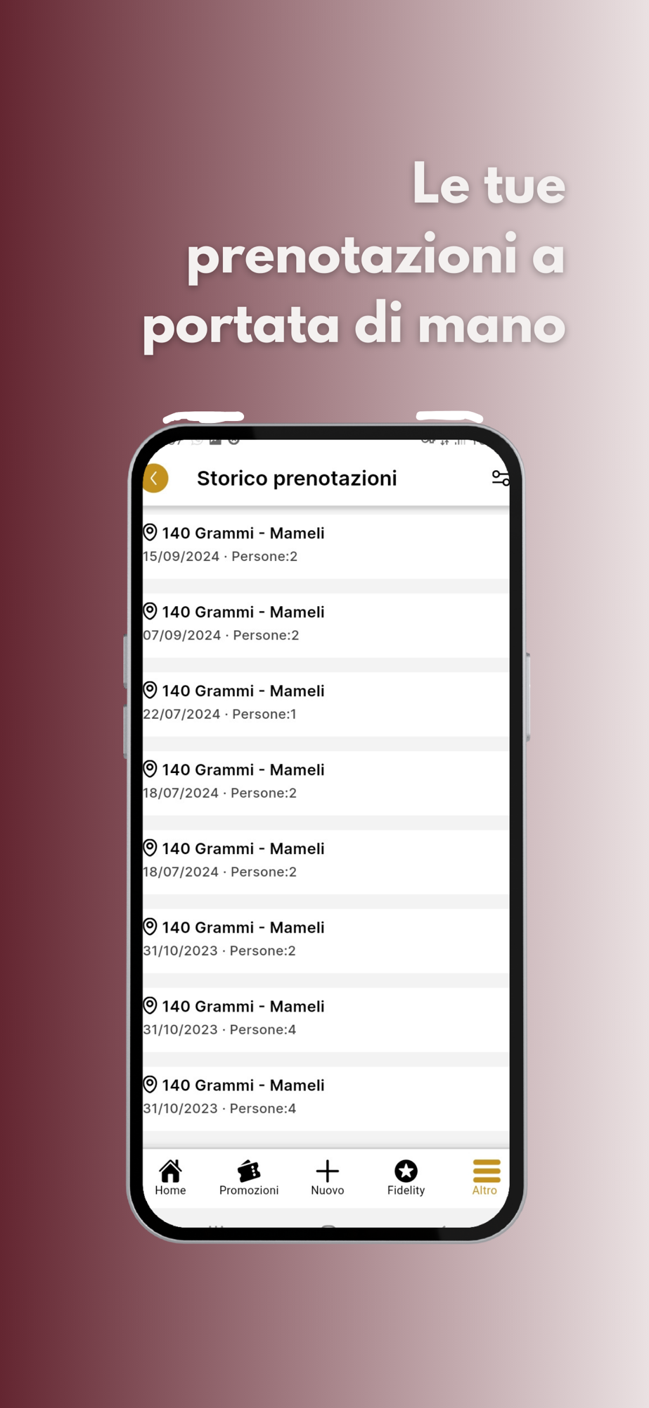 Con l'app di 140 Grammi, hai il controllo totale: prenota, ordina e approfitta di tutte le promozioni!