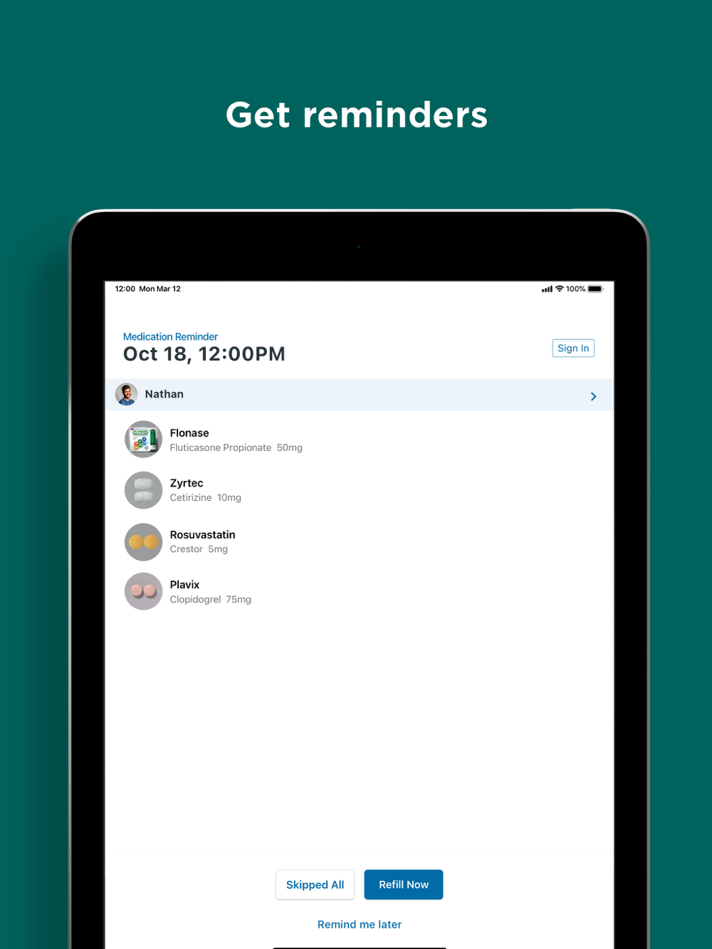 My KP Meds automatically imports your list of KP medications and helps you stay on track. Create reminders that work with your schedule. And when it’s time to refill, order from your phone. It’s that simple.
