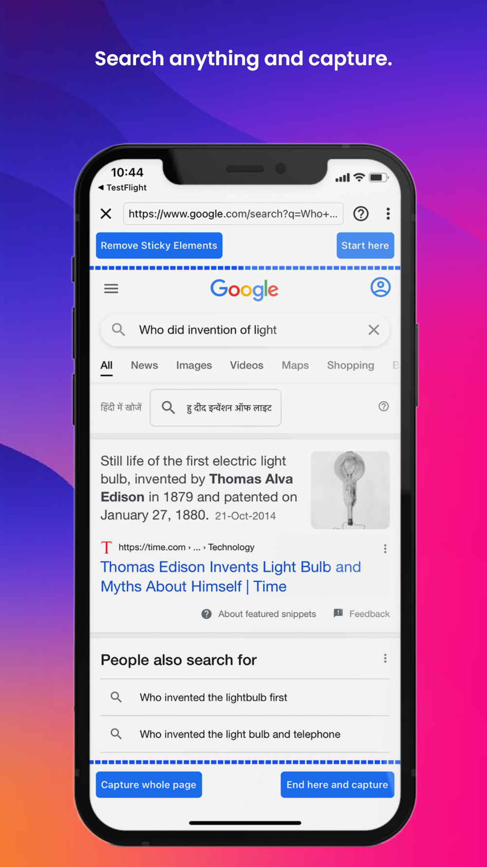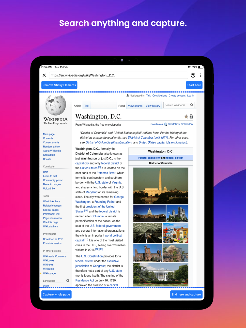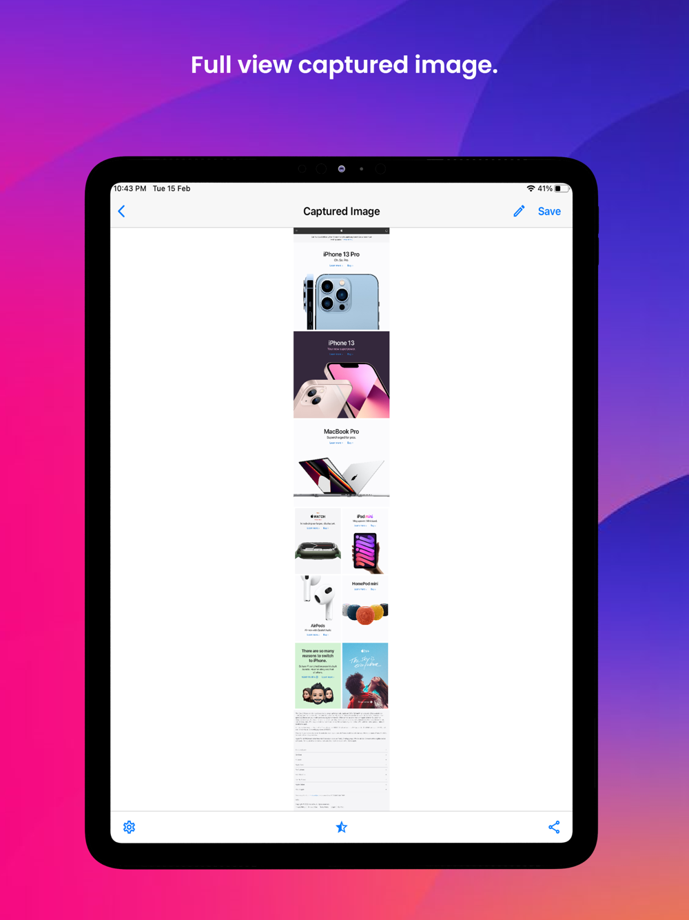 - Take full-length screenshots of entire web pages.