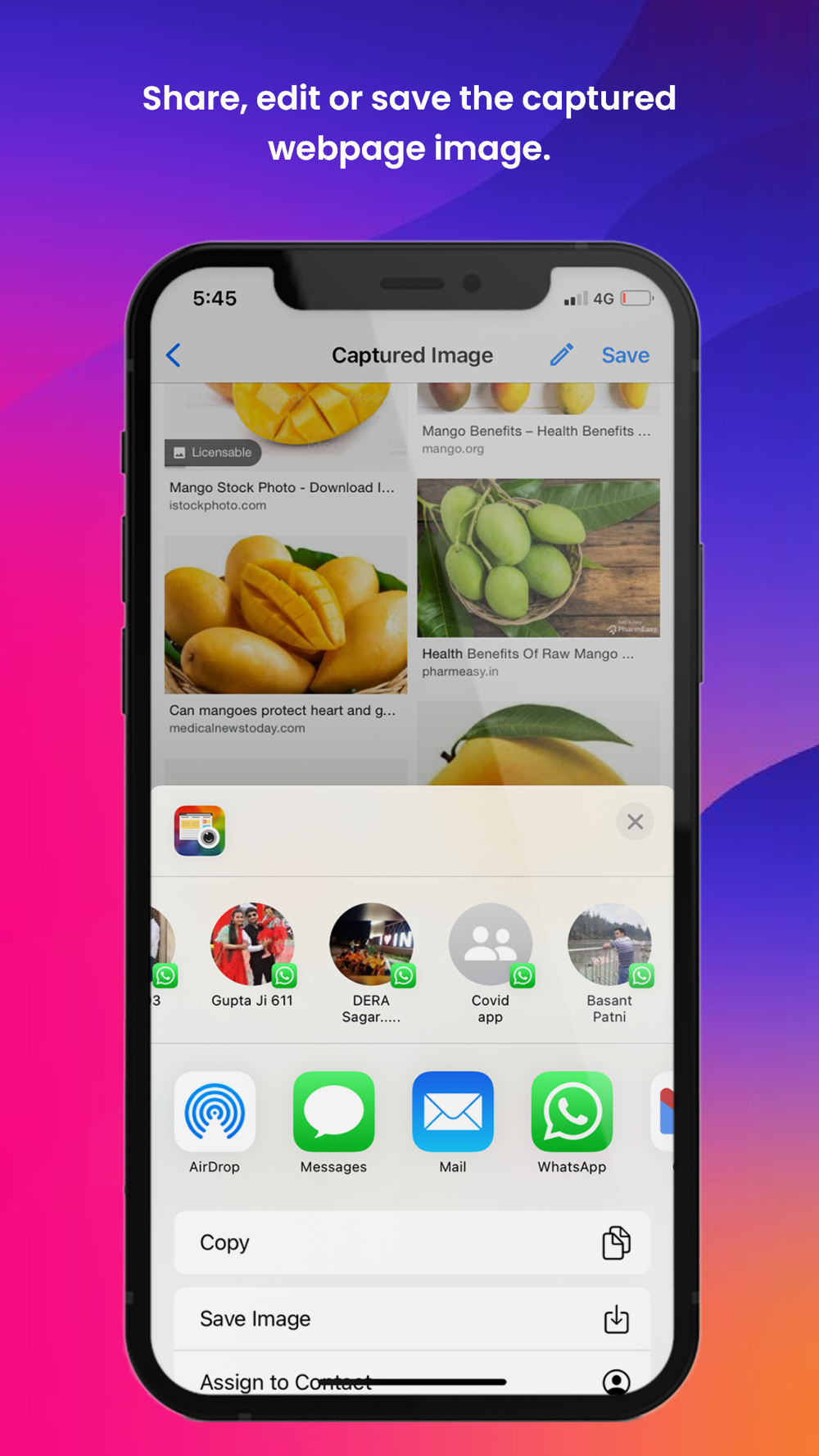 - Share captured screenshots with anyone using various options.