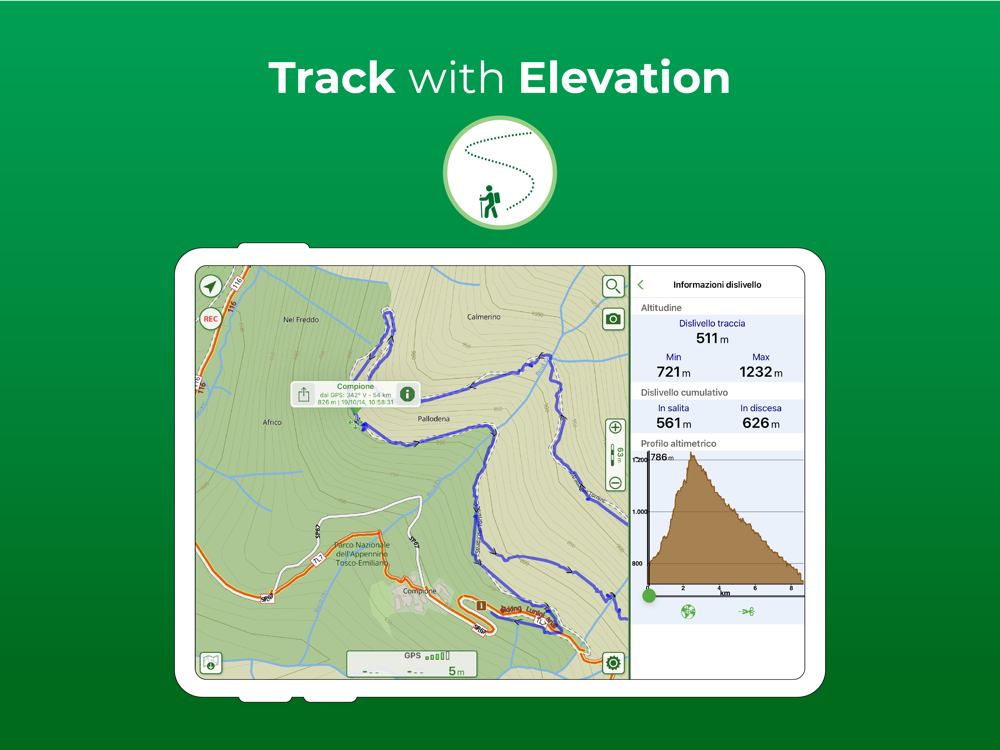 Designed to work for an entire day, Terra Map also includes a battery monitoring system that, in case of active recording, will automatically stop the track to prevent the device from running out of power.