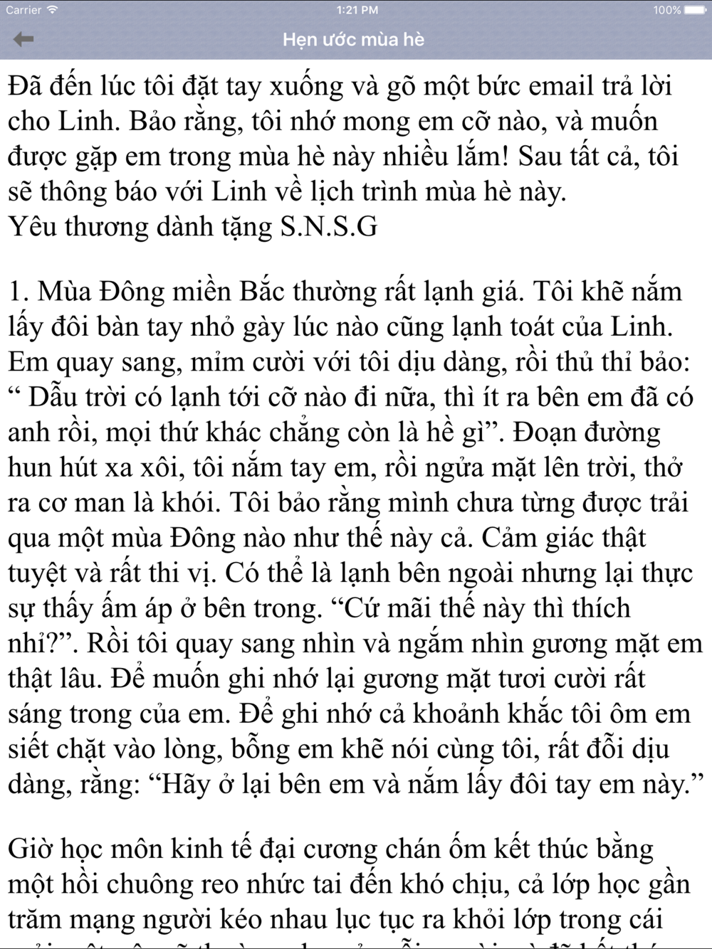 ••• 1001 Truyện ngắn hay là ứng dụng tổng hợp những mẫu truyện hay của nhiều tác giả. Với ứng dụng, tác giả hy vọng rằng có thể đem tới cho các bạn những giây phút thư giản thật thoải mái cũng như suy ngẫm về tình yêu và cuộc sống thời hiện đại •••