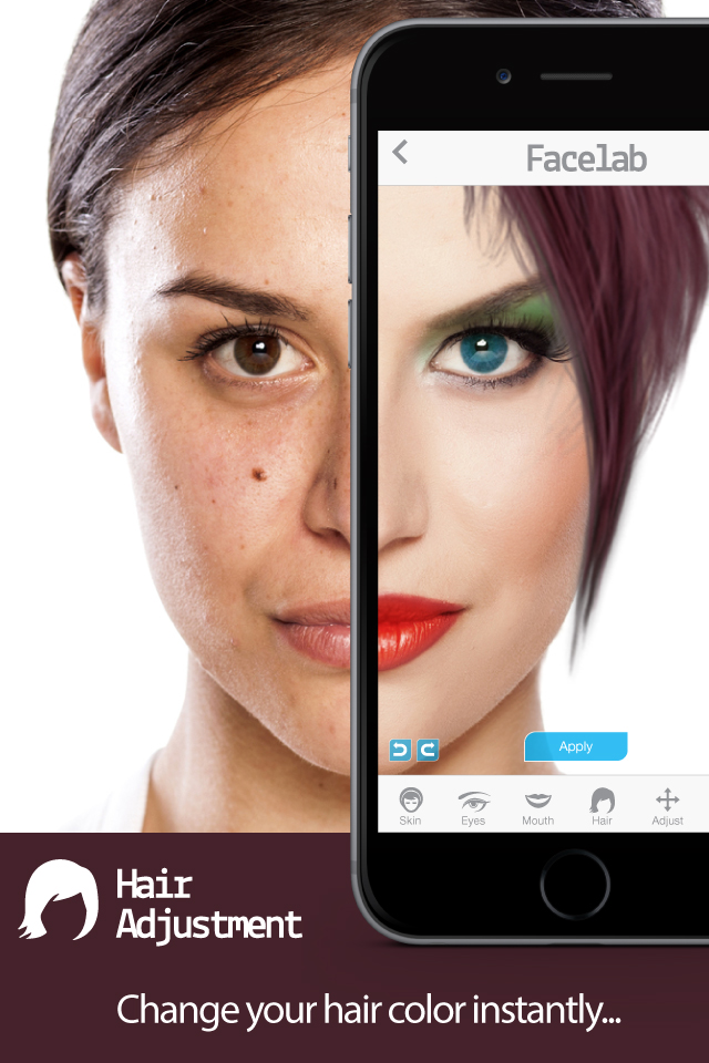 Facelab includes an array of cosmetic tools to enhance eyes, skin, lips and teeth. Mix and match hundreds of lipstick, eye shadow, mascara, or foundation color combinations to try out the perfect makeup color and style that matches you