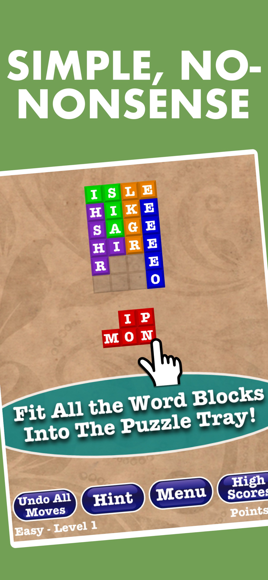 All you need to do is make horizontal words with all the pieces. Sounds simple, but wait till you try crazy mode!