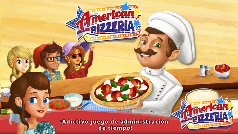 ¡Cocina pizza deliciosamente crocante en American Pizzeria! ¡Explora y sirve pizzas con el auténtico estilo de Nueva York, Chicago, California y la Napolitana, y asegúrate que todos los clientes obtengan un servicio de tres estrellas!