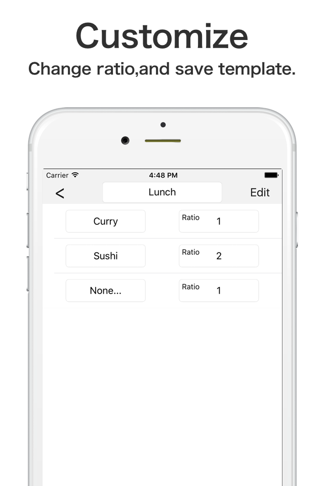 2.Input [Item name] and [Ratio].If you set more Item,push [Add an item] button.