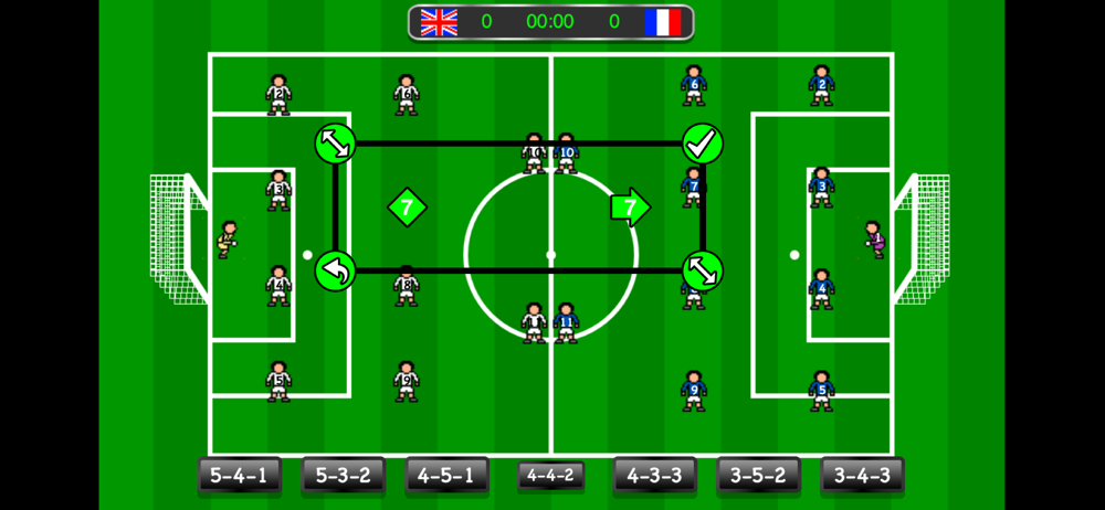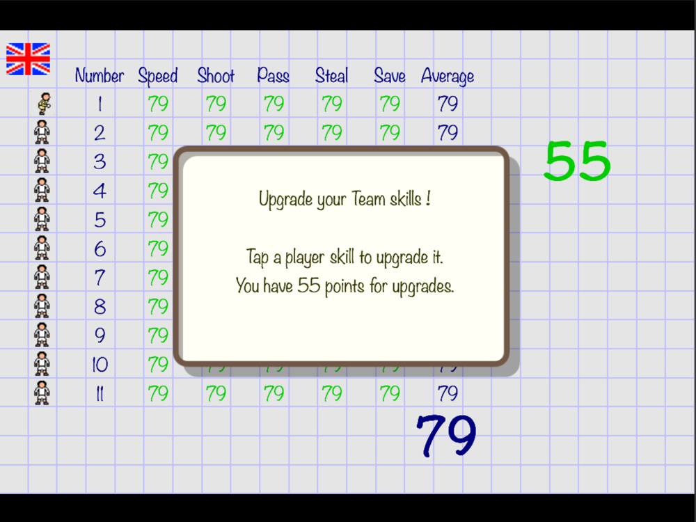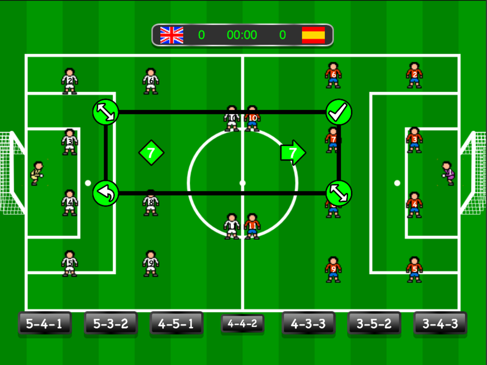 Elige un equipo (8 disponibles), mejora sus habilidades, elige la formación, modifica las áreas de juego de cada jugador.