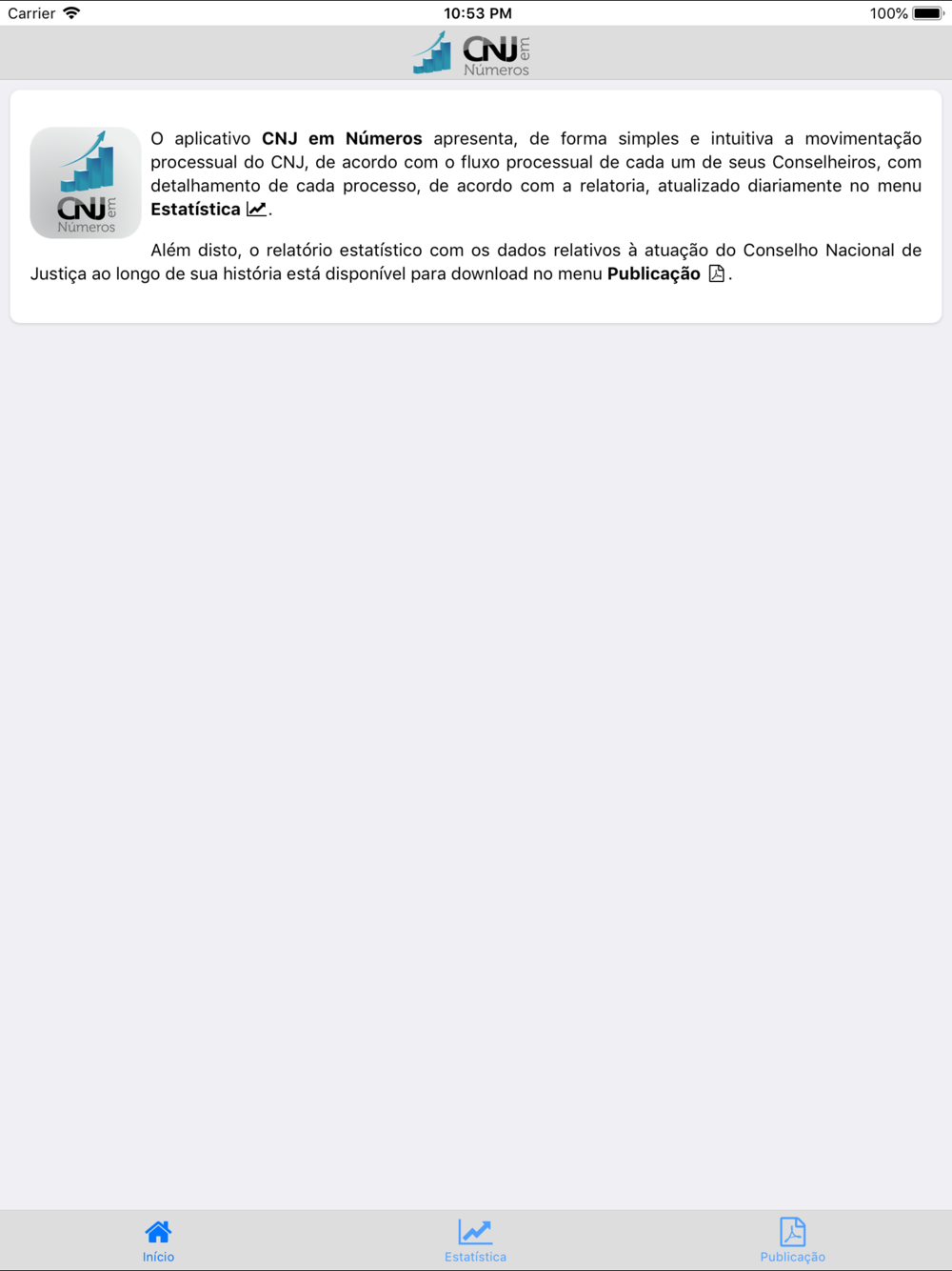 O aplicativo CNJ em Números apresenta, de forma simples e intuitiva a movimentação processual do CNJ, de acordo com o fluxo processual de cada um de seus Conselheiros, com detalhamento de cada processo, de acordo com a relatoria, atualizado diariamente.