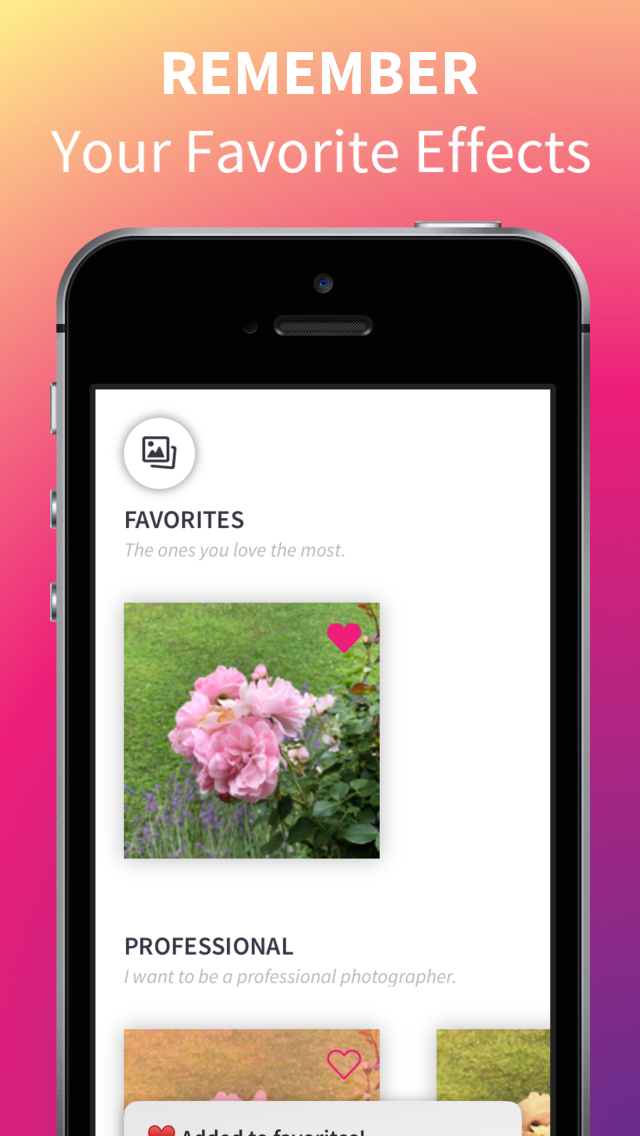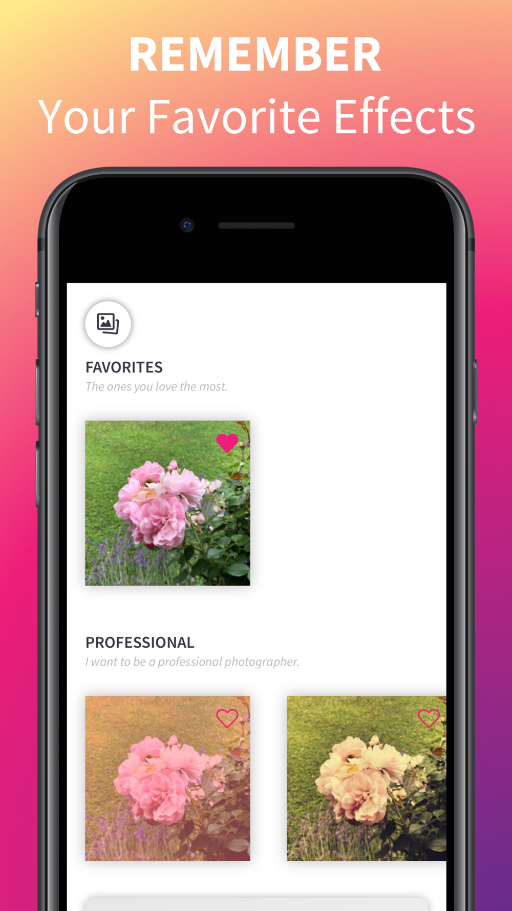 Put your **FAVORITE** effects and filters you love the most and keep them organized and on top to be able to quickly use them again.