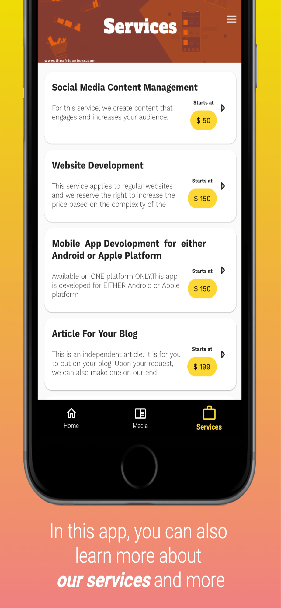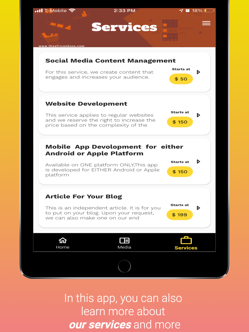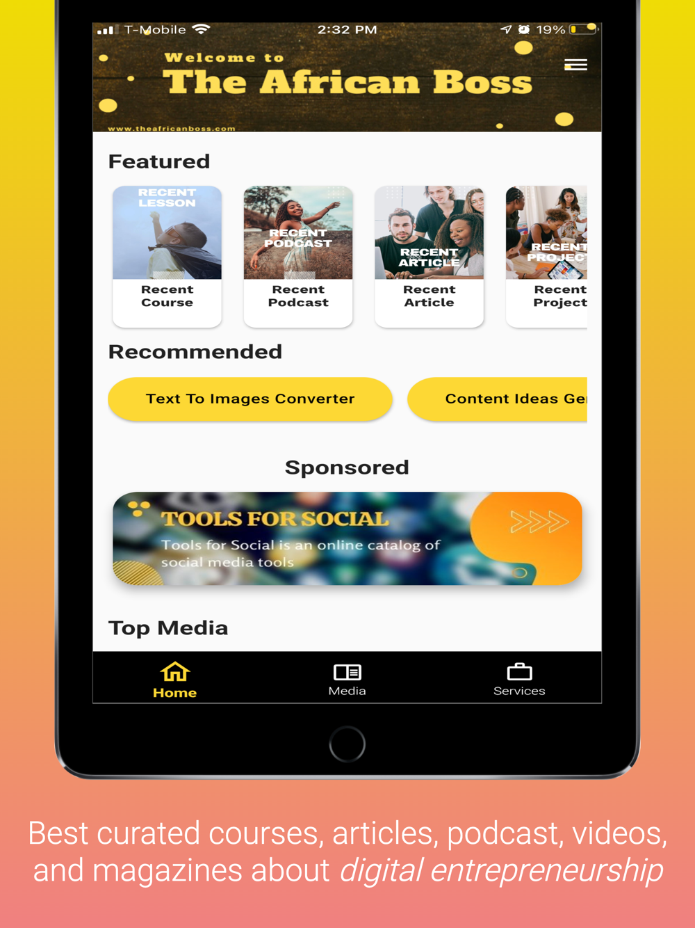 Ability to view, read, watch, listen to different media that we create at The African Boss