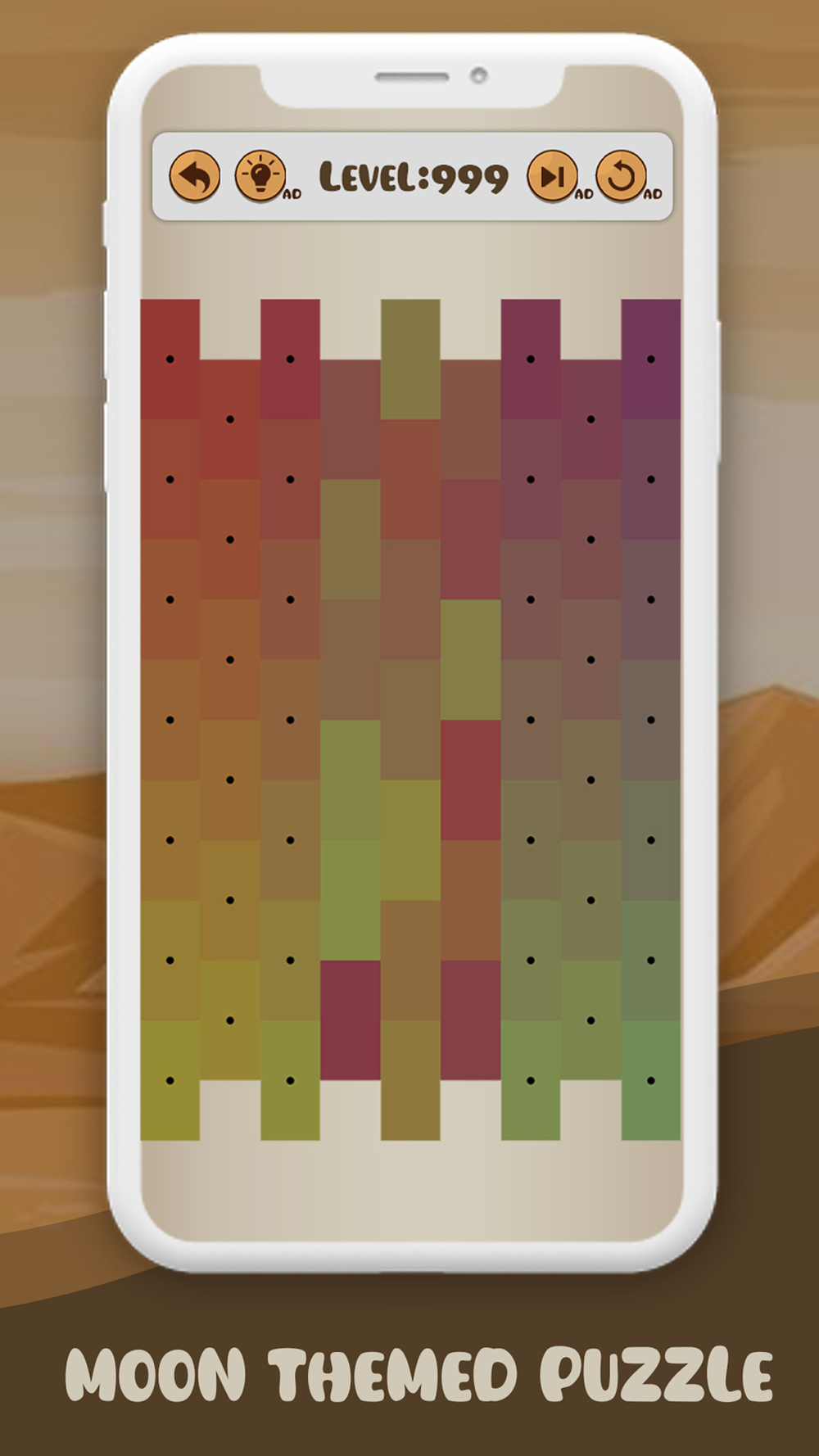 Color hue tiles should be swapped to match the shade and complete rows of colors. Try to complete the row in the fewest moves. Each tile has two states, and there are various ways to swap them. A tile can be dragged, tapped, or pulled to change its state. Tapping to select and tapping again to act will change its state. You may need to pay attention to some tiles since they can't be swapped or moved.