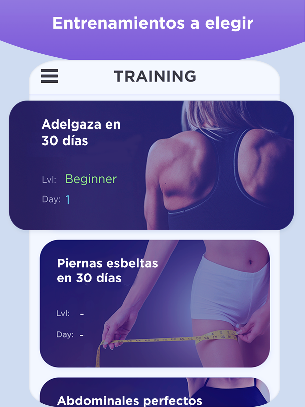 - Descripción detallada de los ejercicios de pérdida de peso con imágenes animadas.