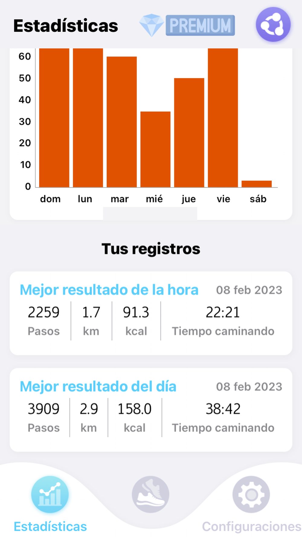 Si desea mantenerse en buena forma, es necesario hacer varias de esas y pasos todos los días. Caminar es muy beneficioso para su salud porque entrena su corazón, ayuda a perder peso, activa varios procesos en su cuerpo, y evern sustituye una serie de otros ejercicios físicos. ¡Así que caminemos, seamos más delgados y saludables! Analiza tus informes diarios para saber cuánto has caminado y qué distancia has recorrido.