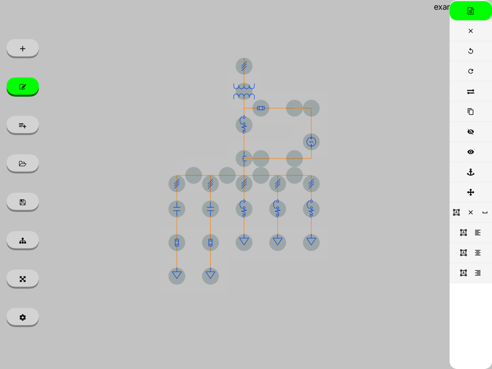 This tool will allow you to create your own one-line diagrams quickly and easily. Simply select the symbol you want to use and drag it to the desired position.