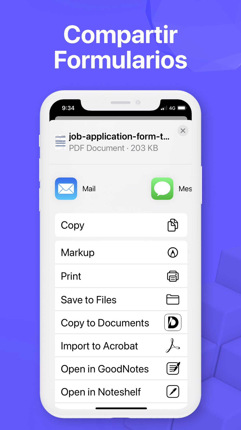 • Comparta archivos PDF por correo electrónico, texto (sms)