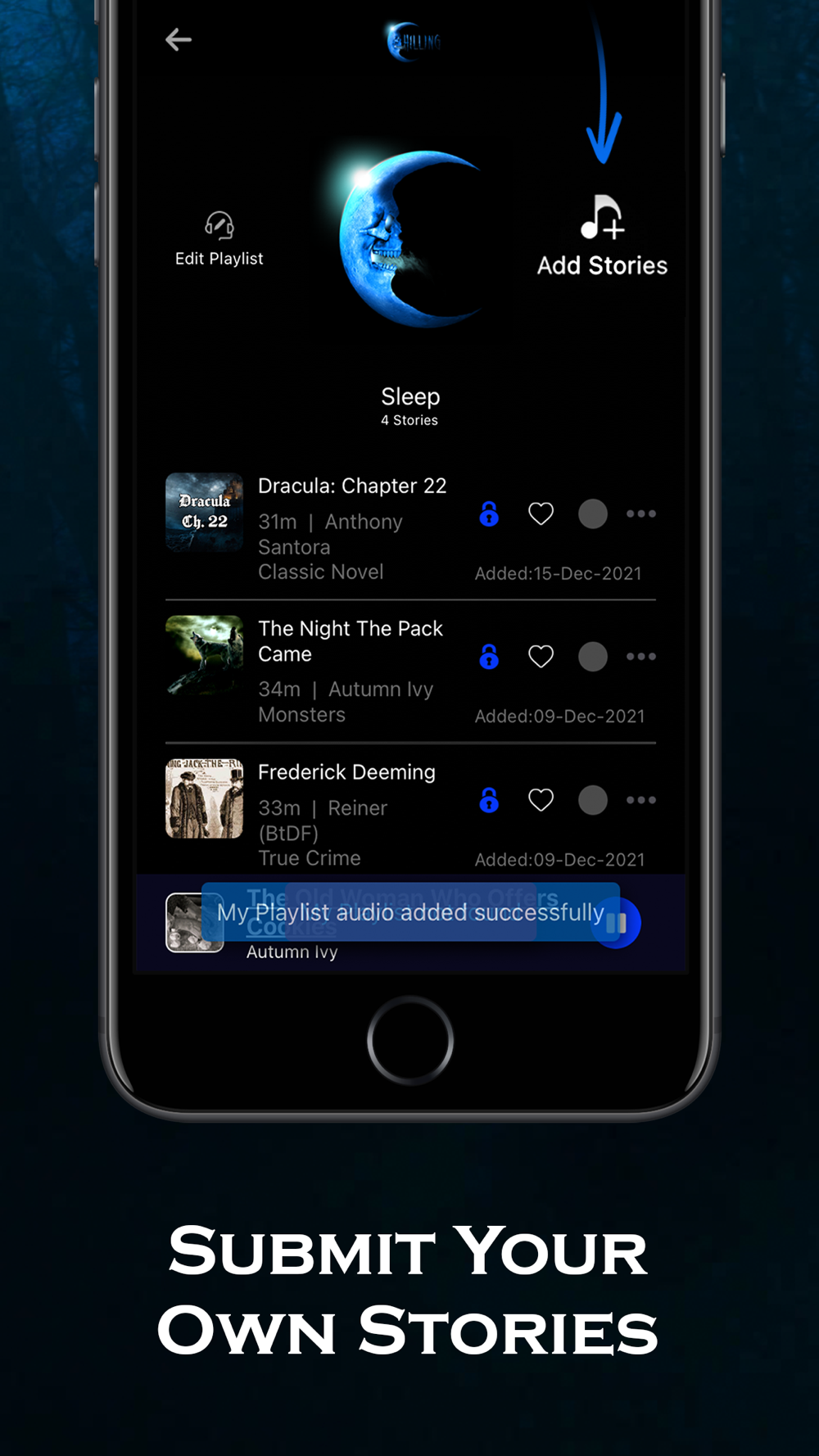 Create playlists of stories from your favorite genres or artists &