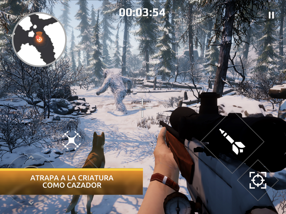 ¡Carga tu arma tranquilizante, alimenta a tu leal perro y aventúrate hacia la gloria eterna de la caza del Pie Grande!