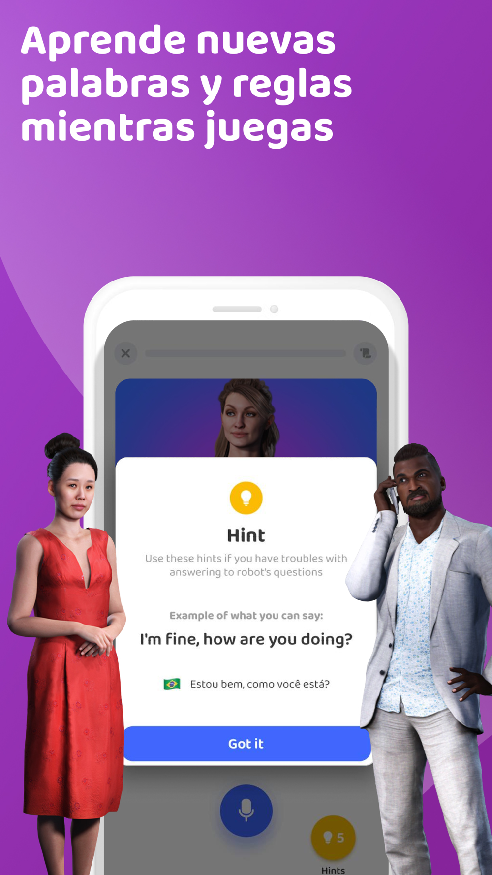 1. Avatares ultrarrealistas: Experimenta el aprendizaje con personalidades, no meras animaciones. Participa en conversaciones significativas, practica juegos de rol y disfruta de una experiencia "cara a cara" con nuestros avatares. Siéntete a gusto y comete errores sin ser juzgado en un entorno de aprendizaje de apoyo.