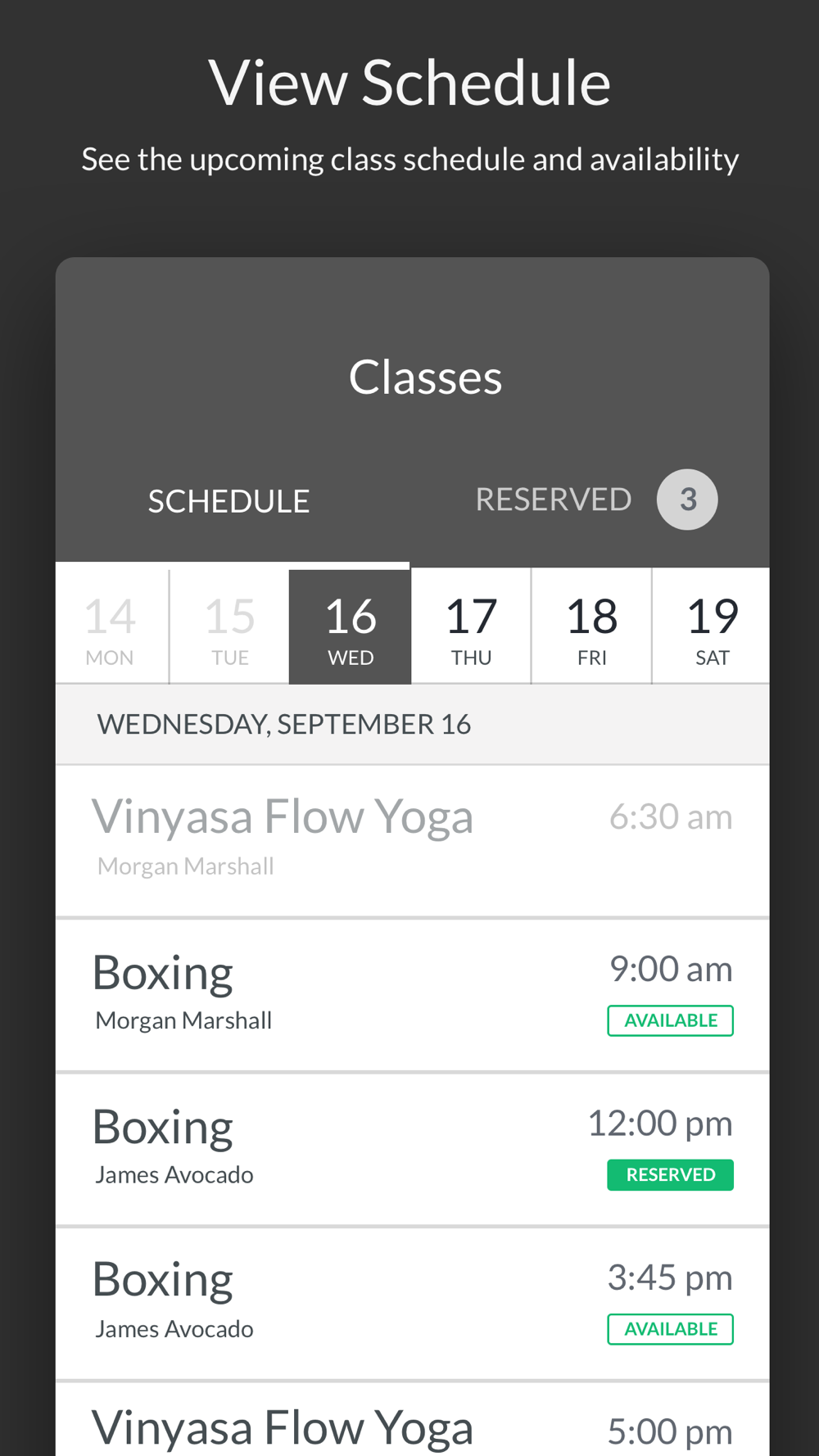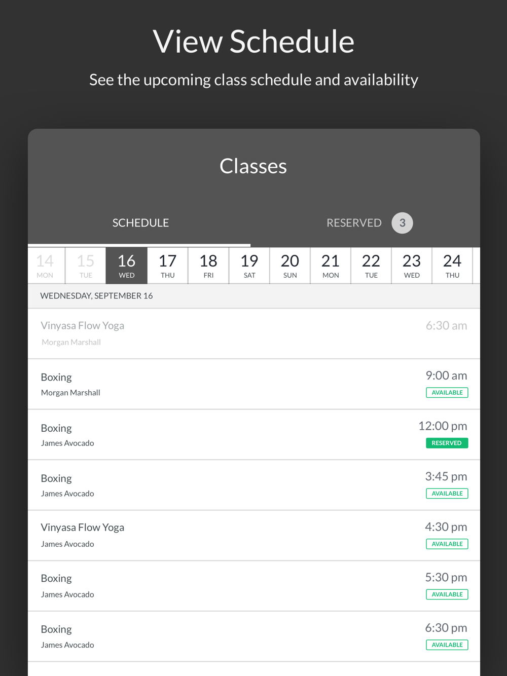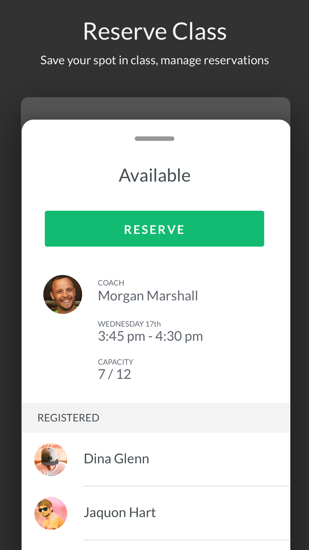 For members of Muscle and Flow to reserve their place in a class, sign up for gym events, and general account management like updating headshots and credit card on file.