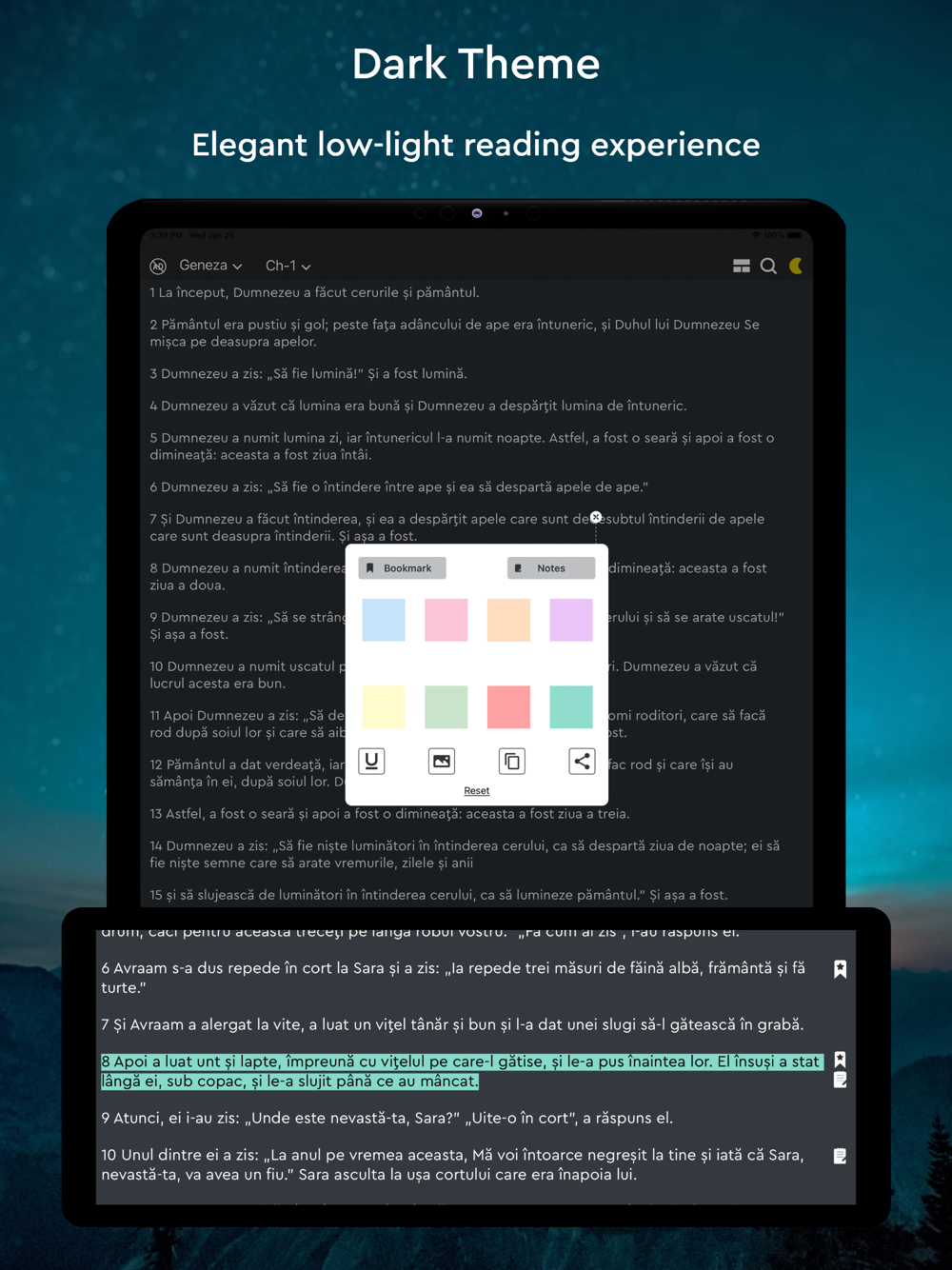 # Night mode: Night reading mode to facilitate reading the Bible at night.