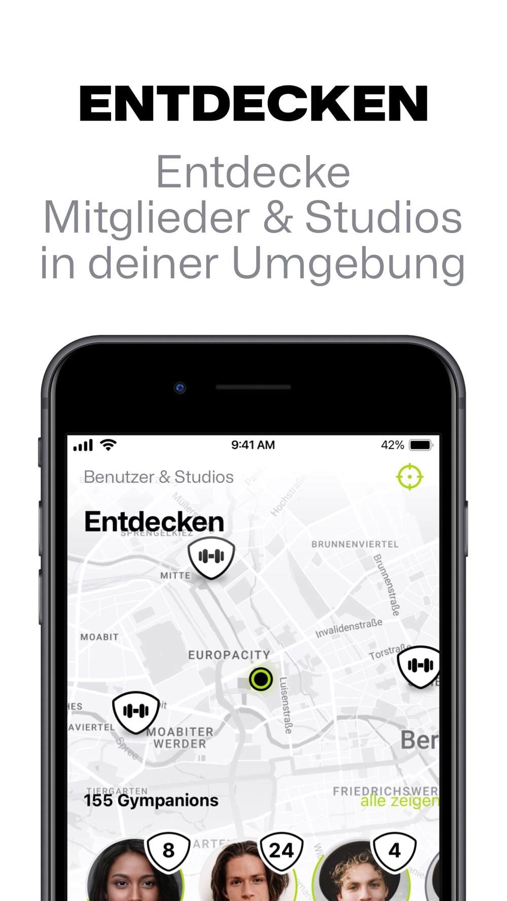 - Verbinde dich mit Personen aus deinem Fitnessstudio und/oder mit Benutzer die ähnlichen Fitness-Interessen haben.