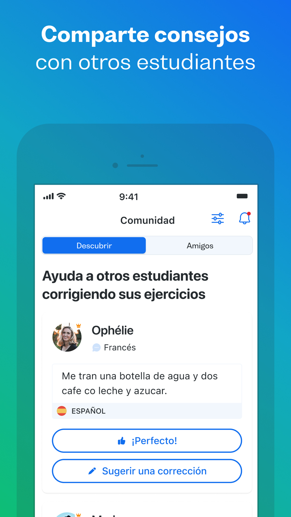 Gracias a nuestras excelentes funcionalidades, ayudamos a más de 120 millones de personas a superar sus dificultades de aprendizaje, desde la falta de tiempo y motivación hasta los problemas con la gramática y el vocabulario. Para ello, ayudamos a nuestros usuarios a alcanzar sus objetivos uno por uno, como lo haremos contigo.