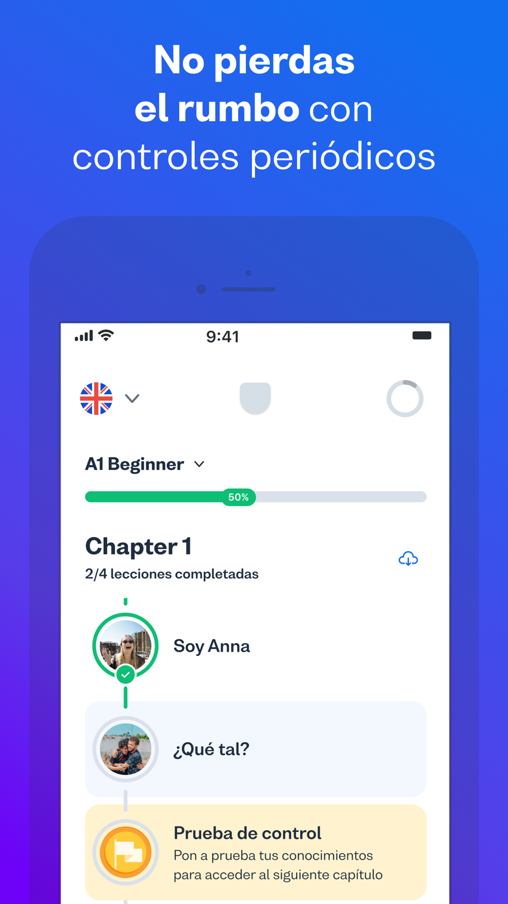 ¿Vas a aprender desde cero? ¡No te preocupes! ¿Lo vas a retomar después de un largo respiro? ¡Tampoco importa! Busuu te ayuda a encontrar tu nivel y a mejorar.